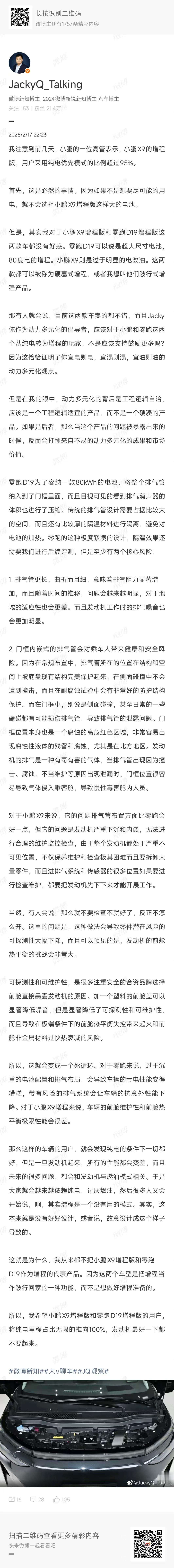- 追求长纯电续航+合理增程系统:必须增大整车尺寸或压缩乘员空间,降低“得房率”,影响家用体验。2. 工程合理性 vs 用户体验:隐性代价- 过度追求空间和续航,会导致增程系统的可探测性、可维护性、热管理能力大幅下降: