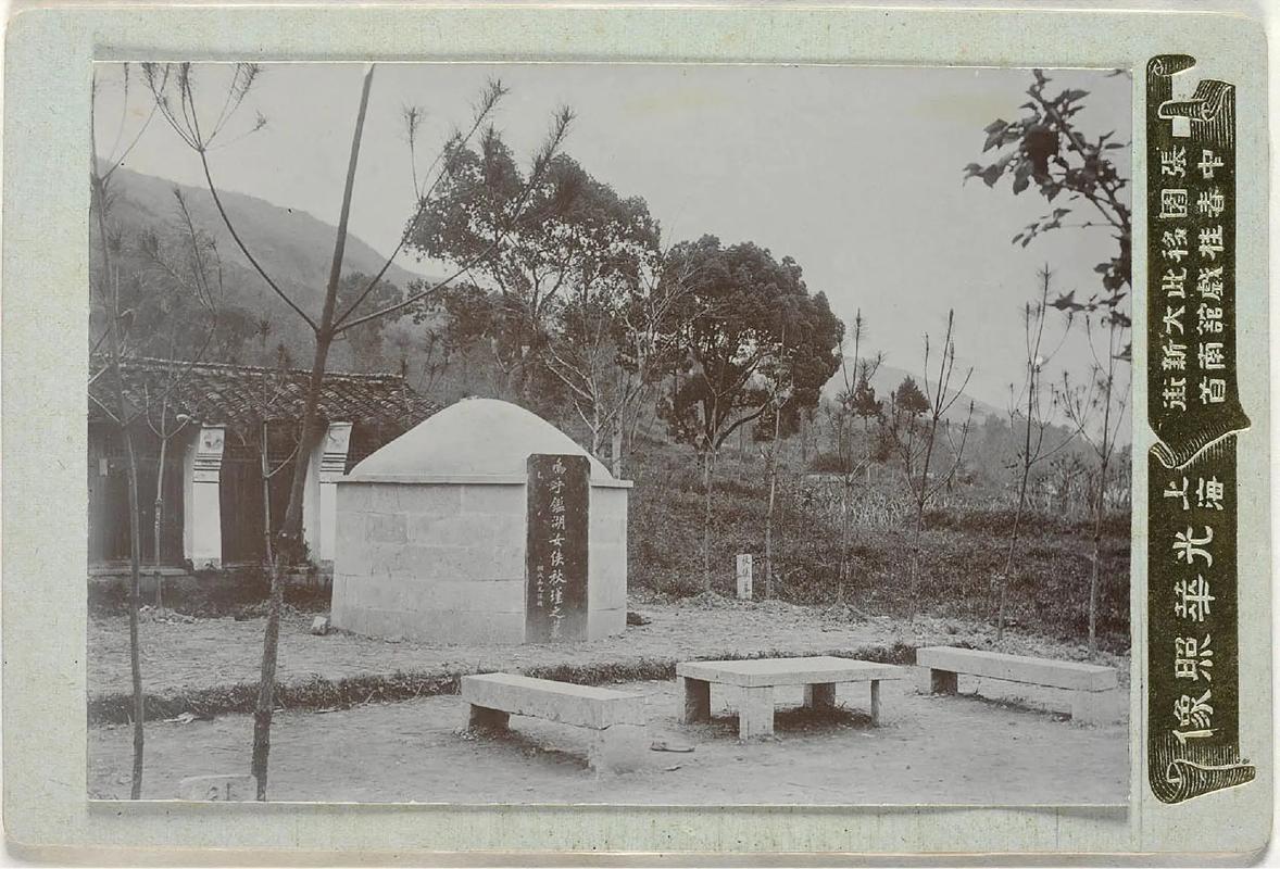 这张由上海光华照相馆拍摄的照片,定格了民国初年杭州西湖畔的秋瑾墓。 照片中,墓前的石碑上清晰地刻着“呜呼鉴湖女侠秋瑾之墓”,这是秋瑾的好友吴芝瑛在1908年亲书的碑文。墓为圆顶石砌,前方设有石桌石凳,供人凭吊。瓦房是当时的墓庐,而远处的山峦正是西湖的群山。 秋瑾就义后,她的遗骨经历了十次迁葬,1907年,秋瑾在绍兴就义后,被草草埋于卧龙山。1908年,好友吴芝瑛、徐自华冒死将其灵柩迁葬杭州西湖西泠桥畔,实现了她“埋骨西泠”的遗愿。清政府震怒,下令平毁墓地,灵柩被迫迁回绍兴,后又远迁湖南湘潭。辛亥革命成功后,1913年,秋瑾灵柩再次还葬西湖原址。