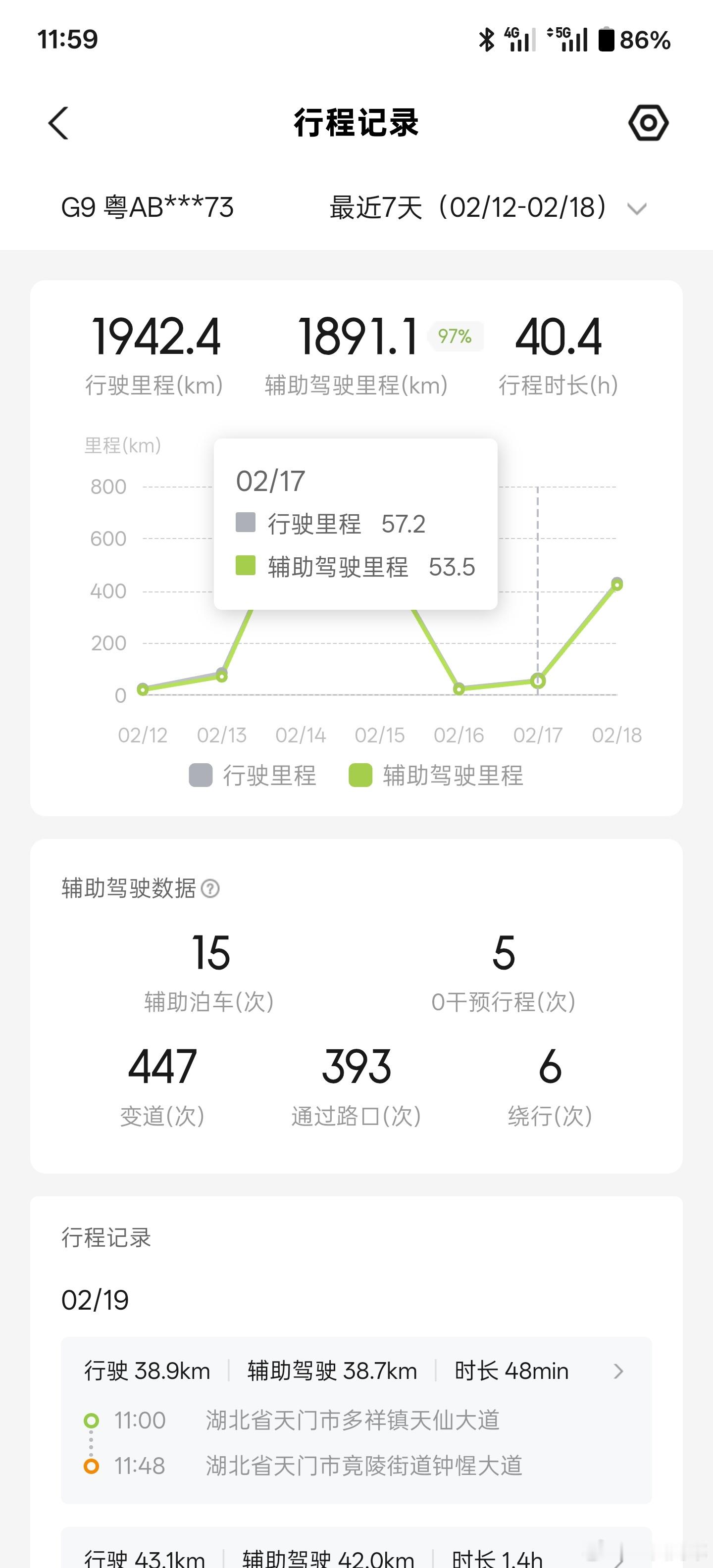 而NGP在2026年春节这几天的城区表现可谓是让我刮目相看,接管率很低很低,大部分行程上都可以做到零接管。2024年春节,靠着全国都能开,虽然能在老家几天主路上开启NGP,但是可用度极低,路口识别不准、走错路和绕行不够是常态。2025年春节,切换到端到端后可谓是跨越式升级,通行能力提升很大,但是对复杂路况下的应对还是不足(比如说一个很窄的路口,有直行的,右转的多辆车都在同时通行,怎么选择一个合理的路线通过),导致接管频繁。2026年春节,NGP的表现已经是一个技术娴熟但动作保守的老司机,除了车道选道这种老大难的问题外,已经没有什么让人觉得"很菜"的操作了。