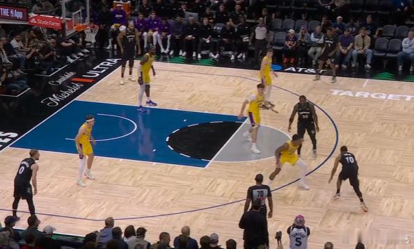 1234外线处于空位的康利接兰德尔突破回传后,直接启动突破过掉扑防的穆雷,直杀篮下见约基奇上前制造进攻犯规,立即急停跳起为切入篮下的戈贝尔送上空接。