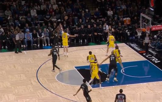 567兰德尔罚球线位置吸引协防后立即出球给左翼空位的康利,康利接球三分稳稳命中。