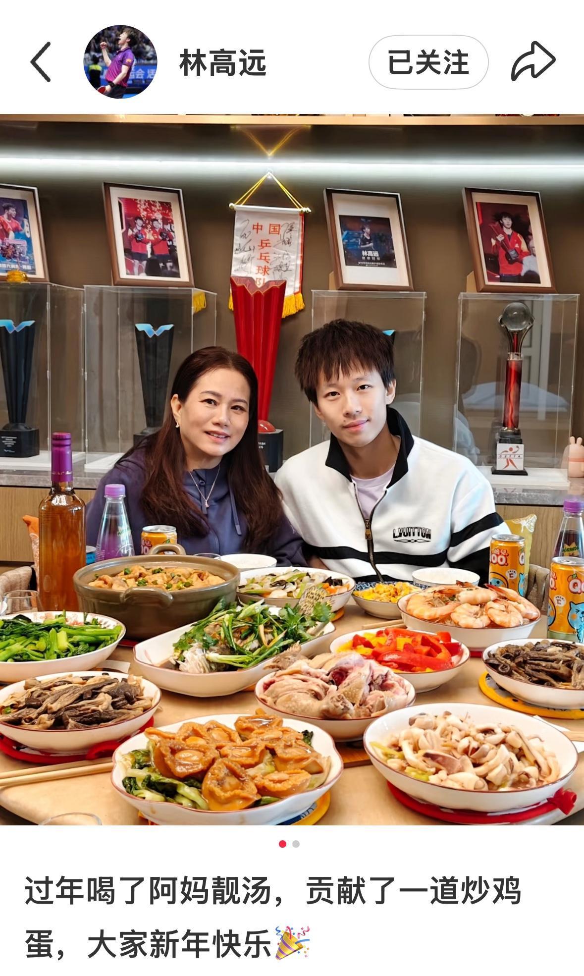 2月19日林高远晒出年夜饭! 林高远更新:过年喝了阿妈的靓汤,贡献了一道炒鸡蛋, 大家新年快乐! 林爸爸不在了, 林高远和妈妈有在 好好生活, 太让人欣慰啦! 哈哈哈林高远不变是炒鸡蛋, 鸡蛋炒西红柿🍅, 难度非常大, 估计林高远轻易不敢尝试! 林高远最近一直在广州陪妈妈, 采访中, 林高远也透露自己的事业重心 会在广州, 有时间多陪陪妈妈, 心里最踏实,也最幸福!