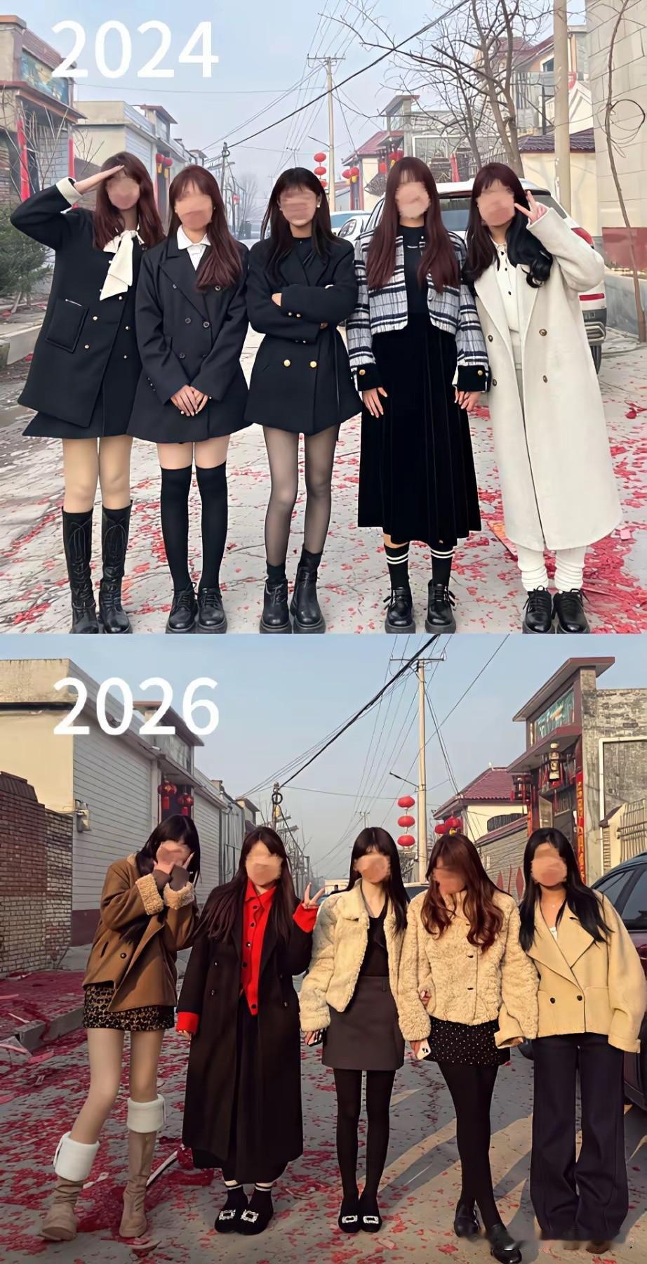同样几个人,相隔两年合照。