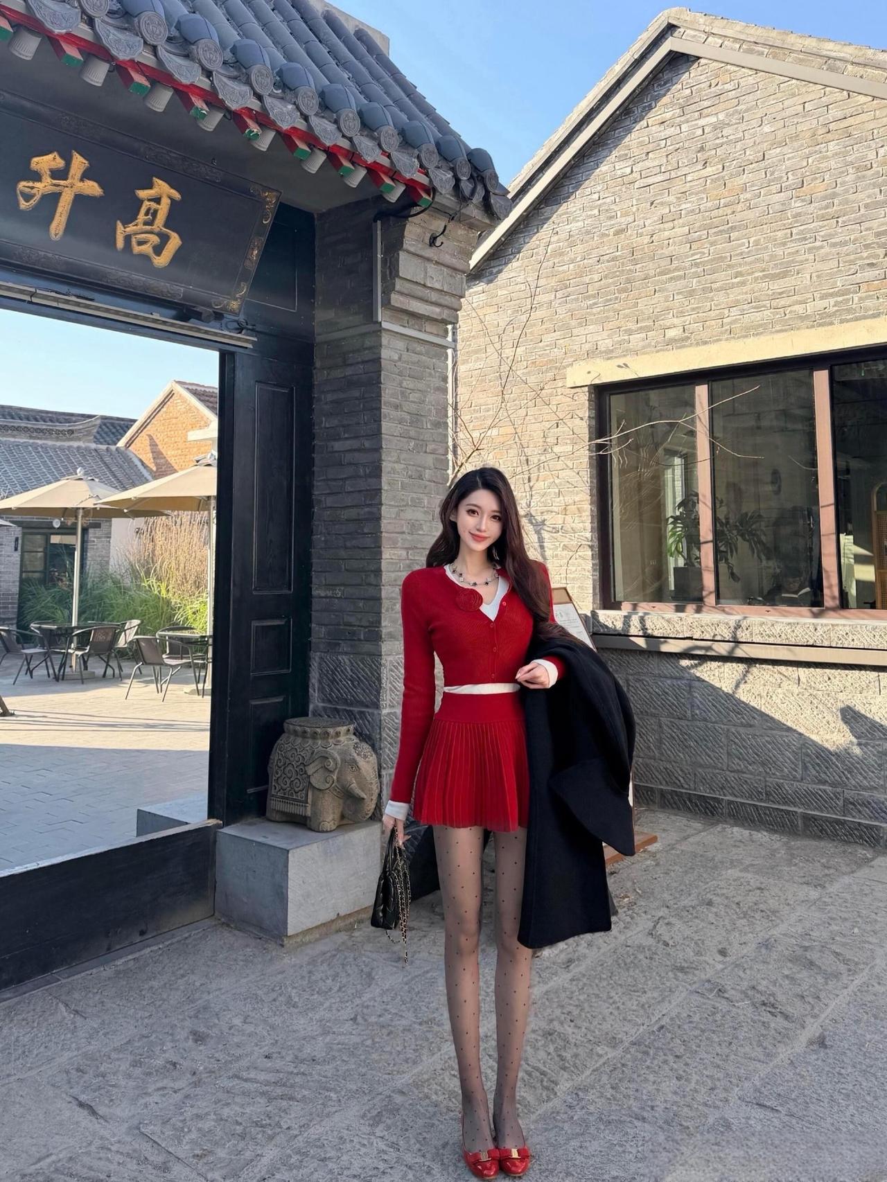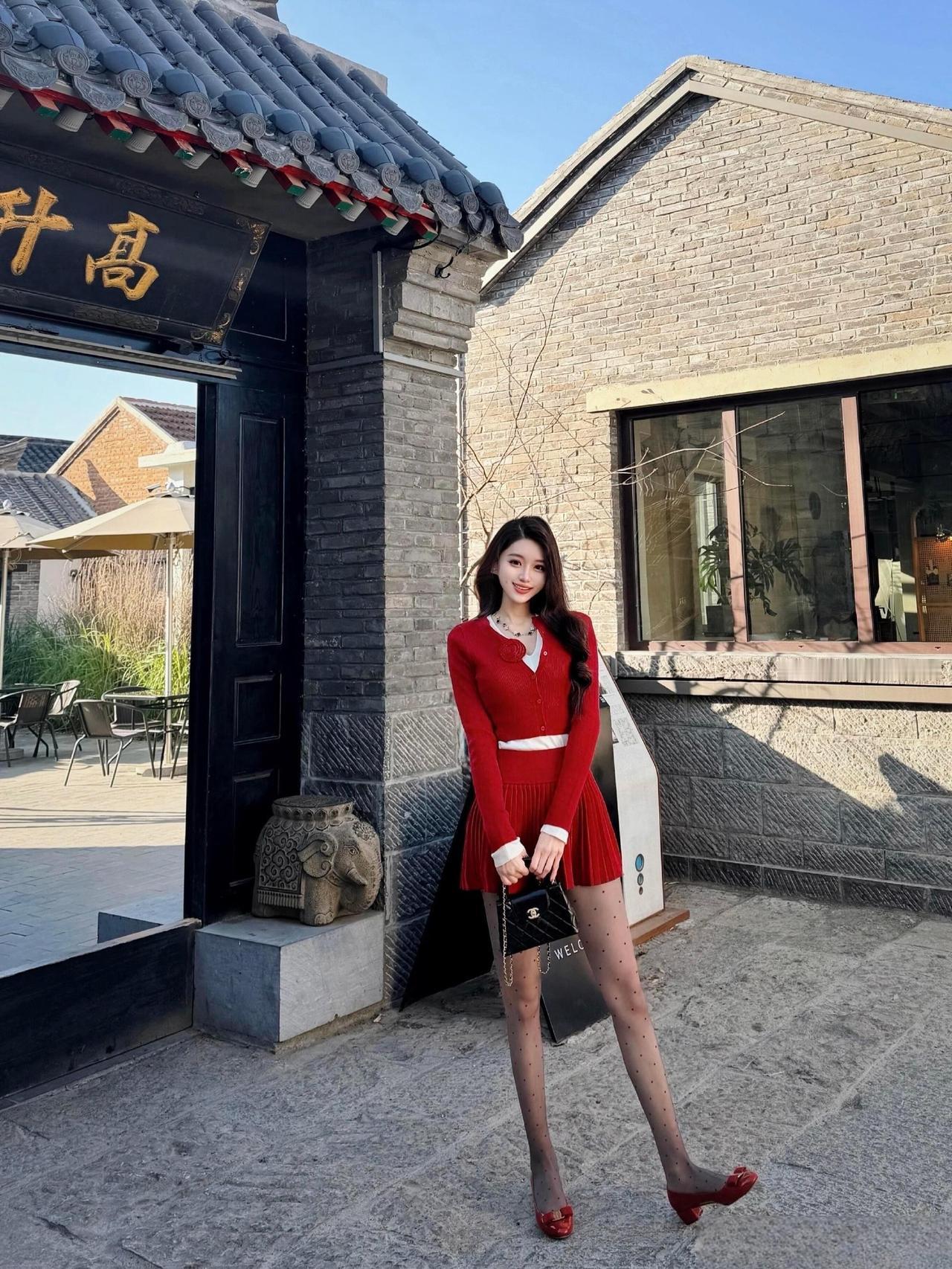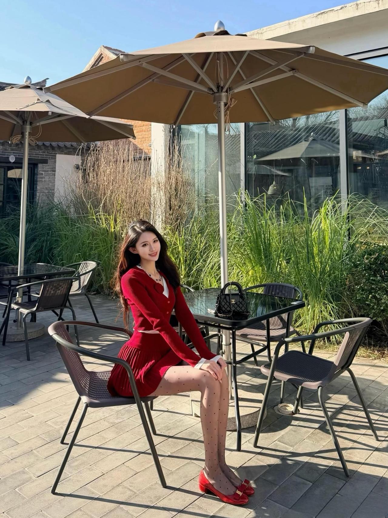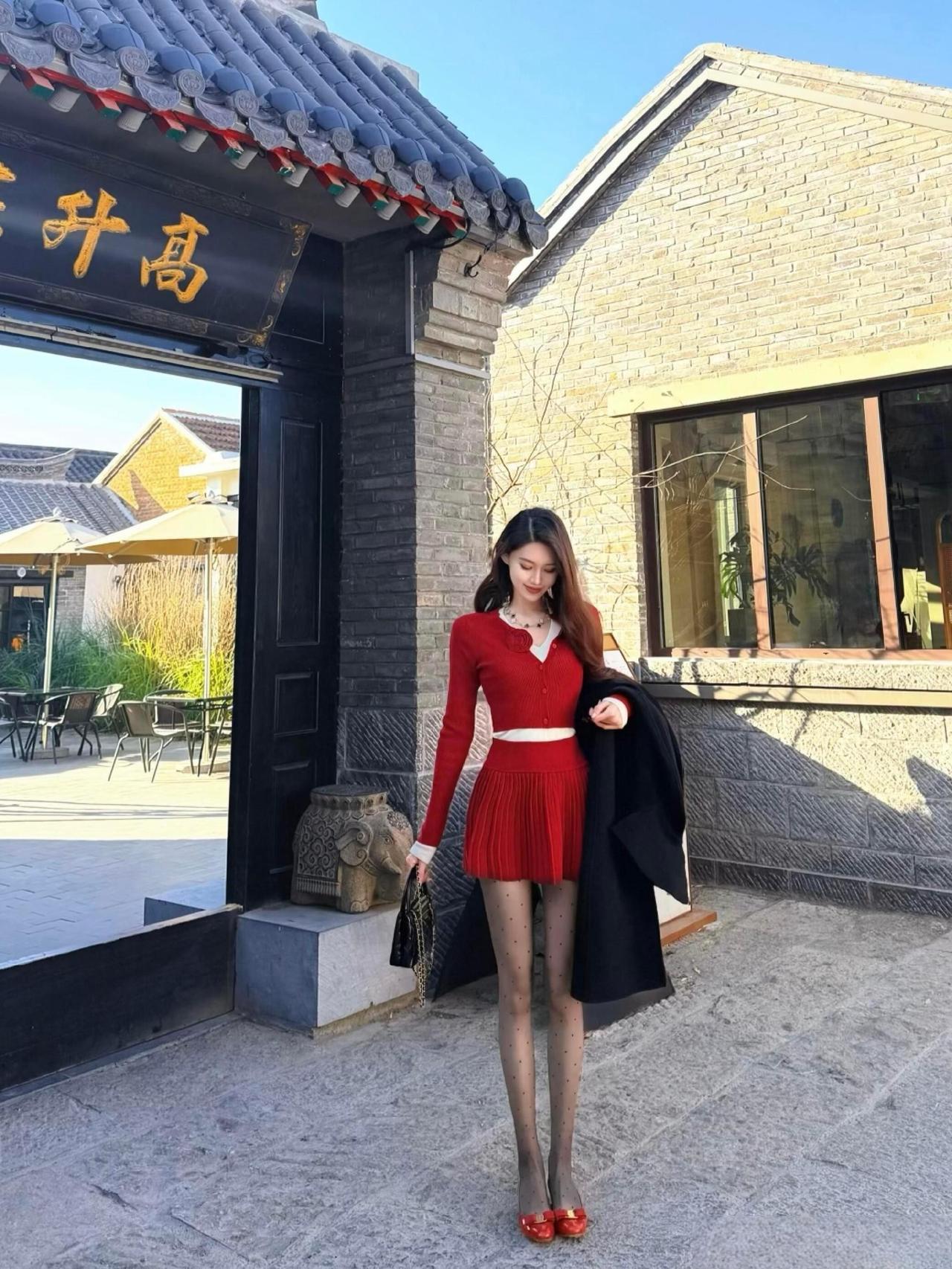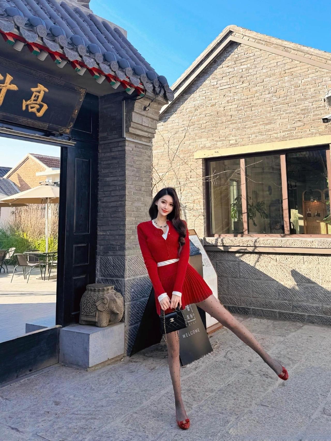 这套穿搭太有“明艳甜贵感”了!正红针织套装自带吸睛气场,白边细节中和了艳丽感,波点丝袜+红鞋让精致度拉满,随手一搭就又美又有氛围感温柔红色穿搭