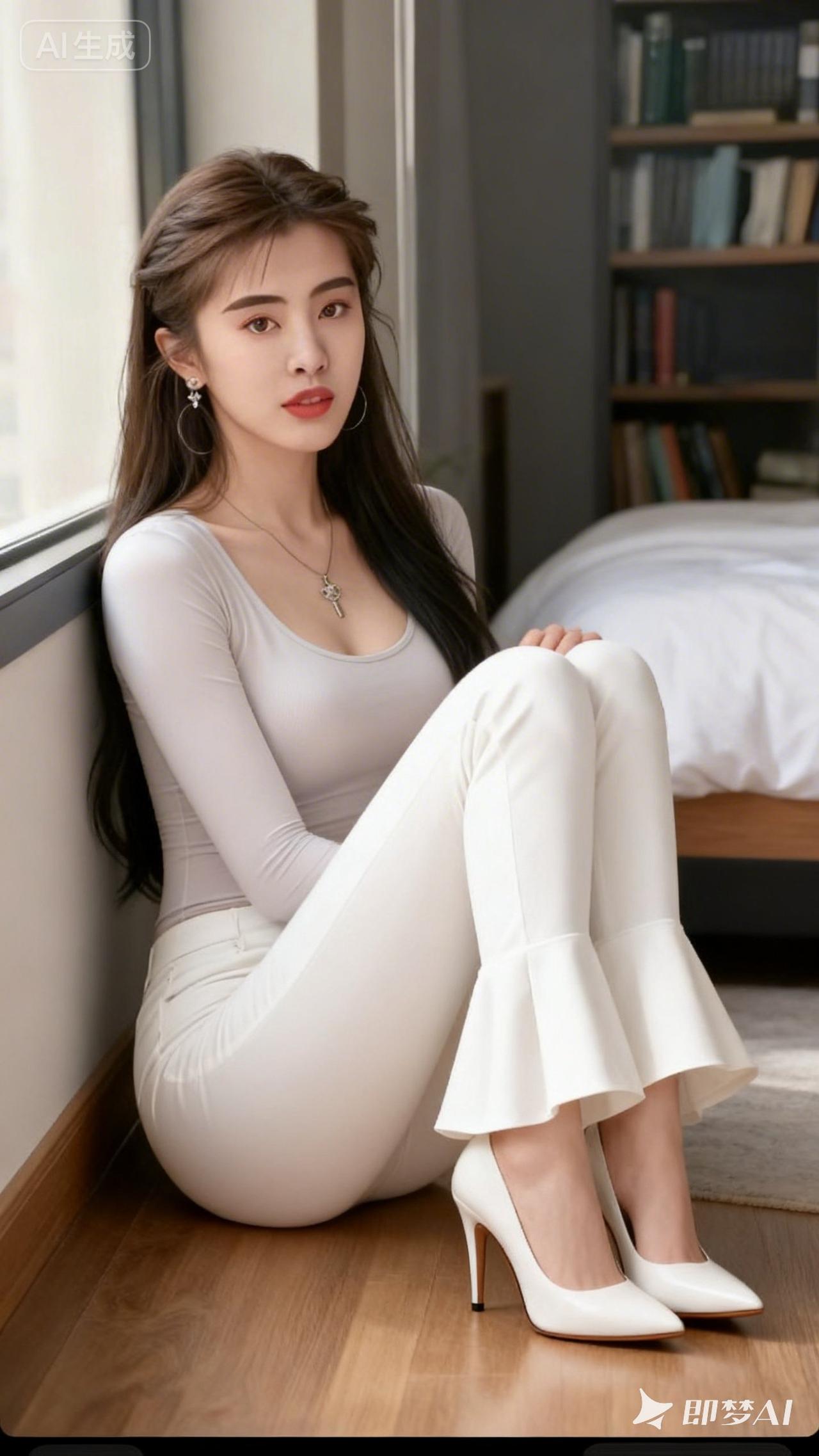 优雅白衣少女,静坐书香卧室,气质如兰。