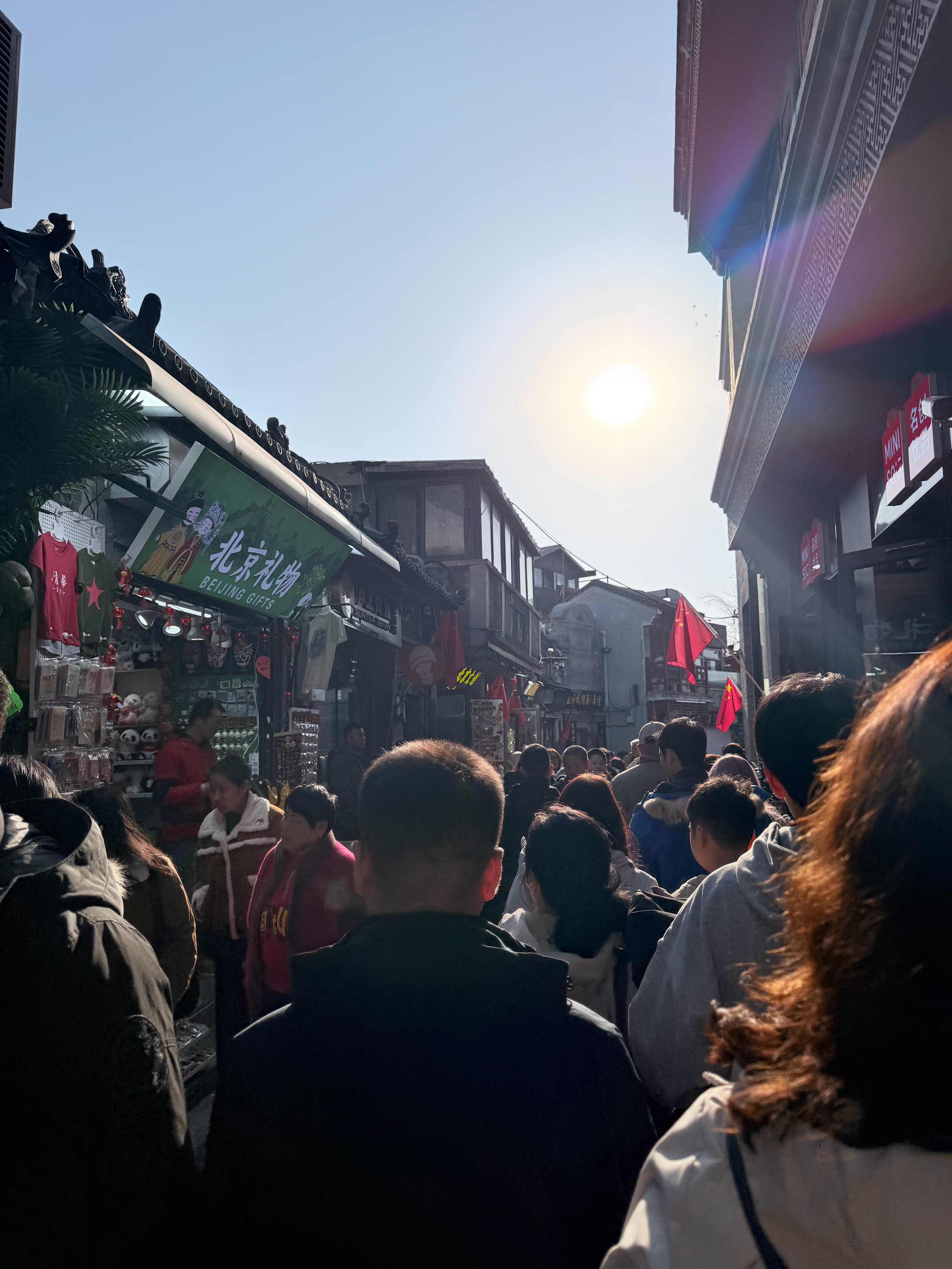 人怎么这么多啊!还有一排排坐路边玩手机的…在家躺着玩儿不好嘛