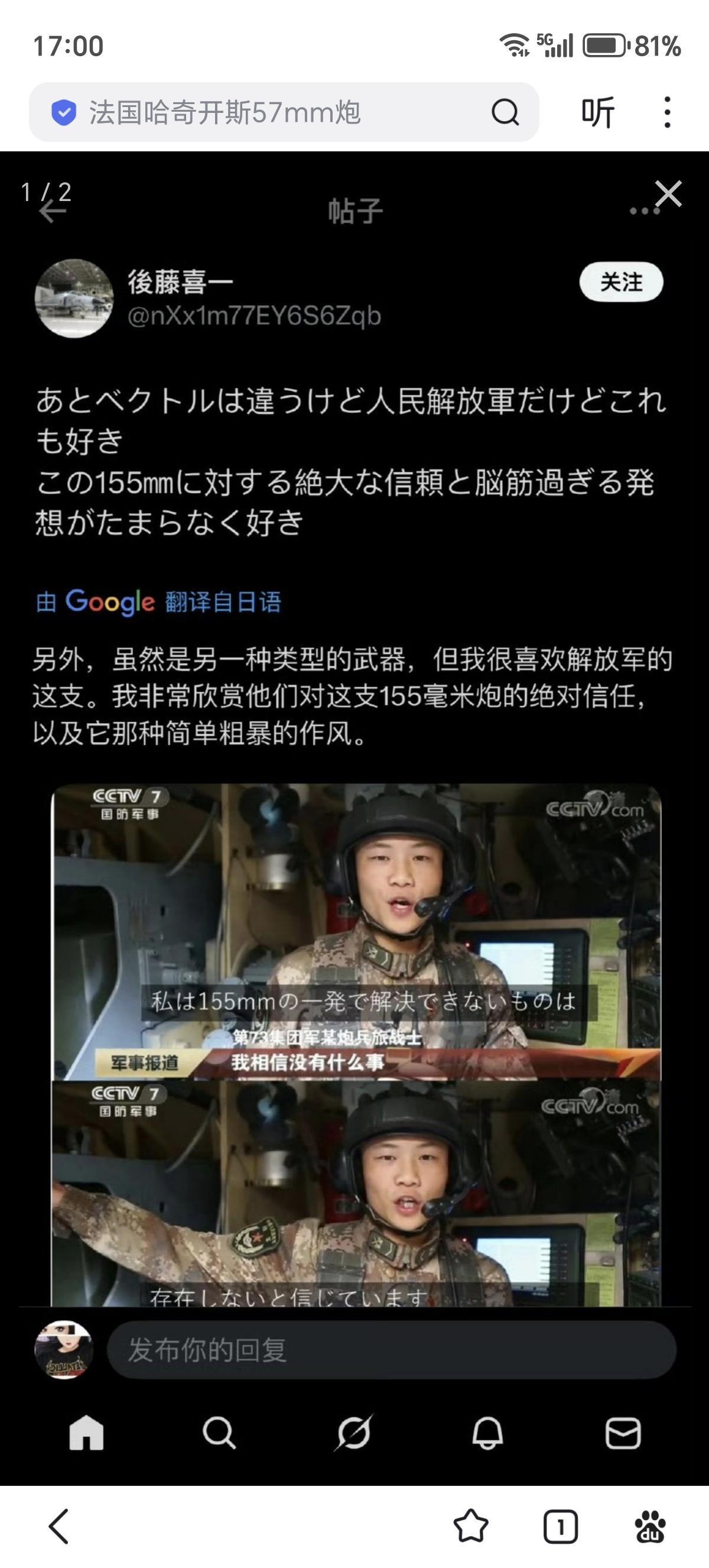 一个日本网友表示,他喜欢解放军155mm自行火炮,以及这支部队简单粗暴的作风!