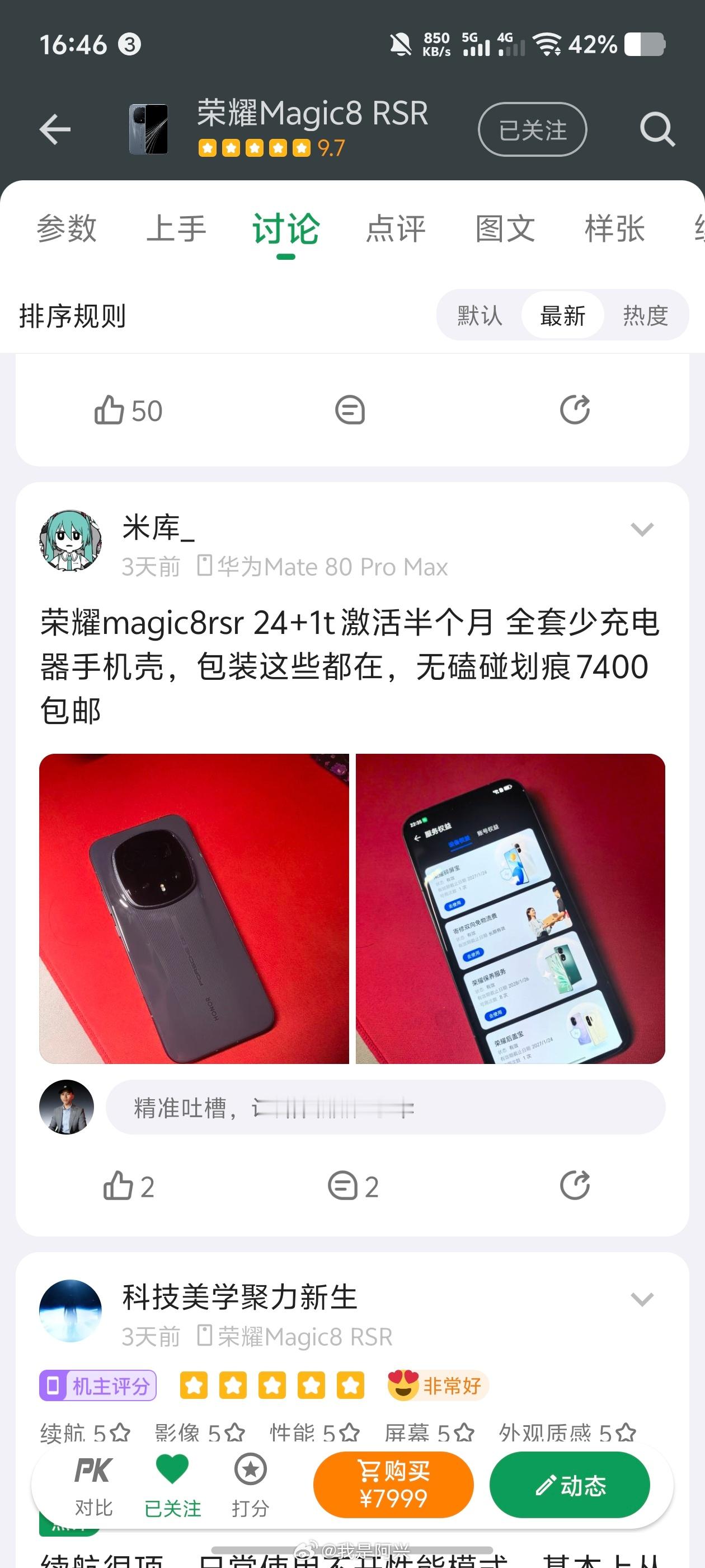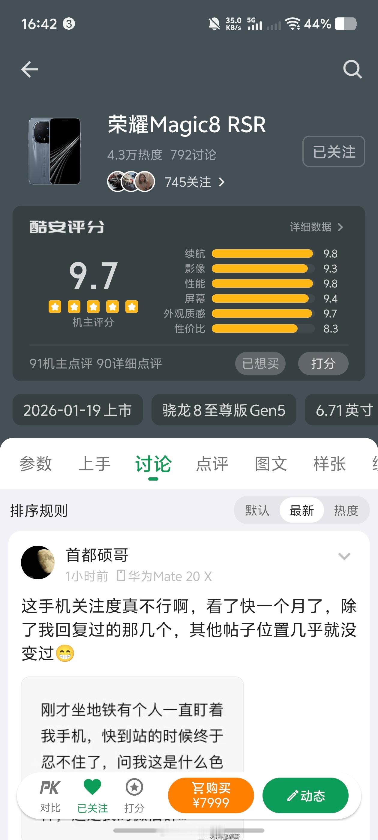 荣耀Magic8 RSR在酷安热度堪比蔚来手机,真就没有一点热度,甚至都没有几个开箱内容。