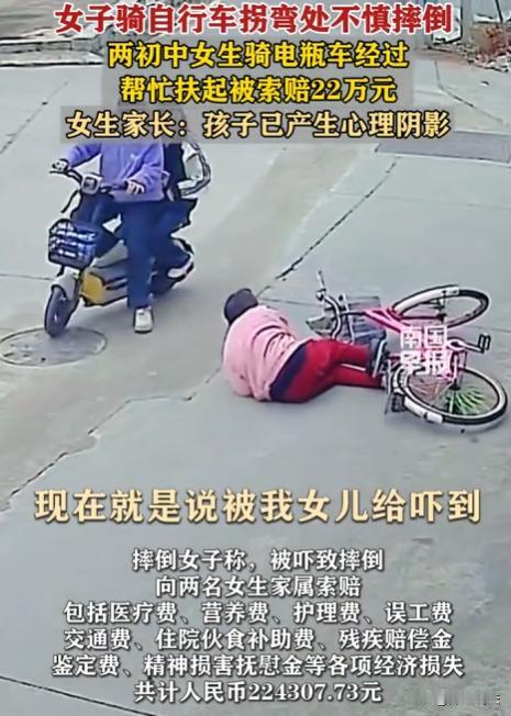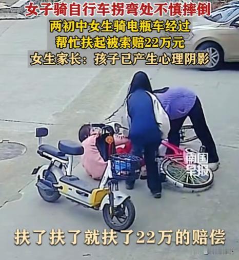 福建莆田,俩初中女生骑电动车外出,见一女子骑车拐弯摔倒,好心上前扶起。谁料女子报警,交警认定女孩“次责”,女子还索赔22万多。这俩女孩本是出于善意帮忙,却陷入这样的麻烦,真的让人想不通。家长更是崩溃,孩子做好事怎么还成被告了? 俩初中女生王某晴和朱某媛,骑电动车出去玩,路上正走着,瞧见前面一女子骑车拐弯时摔倒了,这俩孩子心地善良啊,也没多想,赶紧就把电动车停路边,跑过去想把那女子扶起来。 王某晴和朱某媛把她扶起来,还问她怎么样了,有没有受伤。那女子一开始也没说什么,可等她缓过劲来,也不知道咋想的,直接就报了警。 民警来了之后,就开始调查情况。这期间,王某晴和朱某媛心里还挺坦然,想着自己就是做好事,肯定没什么事。可没想到,交警最后认定这俩女孩负“次责”,还说她们得赔那女子22万多块钱。 王某晴的母亲知道这事后,都懵了。她回忆起当时的情景说:我这孩子就是好心去扶人,咋就成被告了呢?这上哪儿说理去! 从那以后,王某晴和朱某媛就像变了个人似的。以前俩孩子活泼开朗,整天叽叽喳喳的,现在变得沉默寡言,不爱说话了,出门也变得畏畏缩缩,特别害怕再遇到什么事。 这俩孩子本来是出于善意去帮忙,结果却惹上了这么大的麻烦,换做是你,你能不委屈吗? 交警认定这俩女孩负“次责”,这依据到底是什么呢? 根据《道路交通安全法》相关规定,在交通事故中,责任的认定是要综合考虑多方面因素的,比如当事人的行为对事故发生的作用以及过错的严重程度。 那女子骑车拐弯摔倒,她自身肯定是有一定责任的。毕竟拐弯的时候得注意观察路况,控制好车速,这是基本的驾驶常识。要是她自己操作得当,也许就不会摔倒了。 而王某晴和朱某媛,她们去扶人这个行为,本身和交通事故的发生并没有直接的因果关系。她们是出于好心去提供帮助,并没有违反交通规则或者做出其他会导致事故发生的行为。从常理上来说,不能因为她们去扶了人,就把部分责任归到她们头上。 不过,交警在认定责任的时候,可能考虑了一些其他因素。如果在扶人的过程中,有没有因为她们的某些动作,对那女子造成了二次伤害,或者对现场的交通状况产生了影响,从而间接导致了事故后果的加重。但就目前了解到的情况来看,并没有明确的证据表明存在这样的情况。 根据法律规定,赔偿的金额是要根据实际的损失情况来确定的,包括医疗费、误工费、护理费等等。那女子得拿出充分的证据,证明她的这些损失是因为王某晴和朱某媛的行为导致的,并且符合法律规定的赔偿标准。要是拿不出足够的证据,这索赔的要求就很难得到支持。 这案子2月26日就开庭了,真的挺让人关注的。 现在本来就存在一种现象,很多人想做好事却又有所顾虑,就怕惹上麻烦。这俩孩子的事一出来,更是让人心里犯嘀咕,以后谁还敢轻易去扶摔倒的人? 大家说,这责任认定到底合理不合理呢?要是你遇到有人摔倒,你会去扶吗?欢迎在评论区留言讨论,咱们一起聊聊这事。