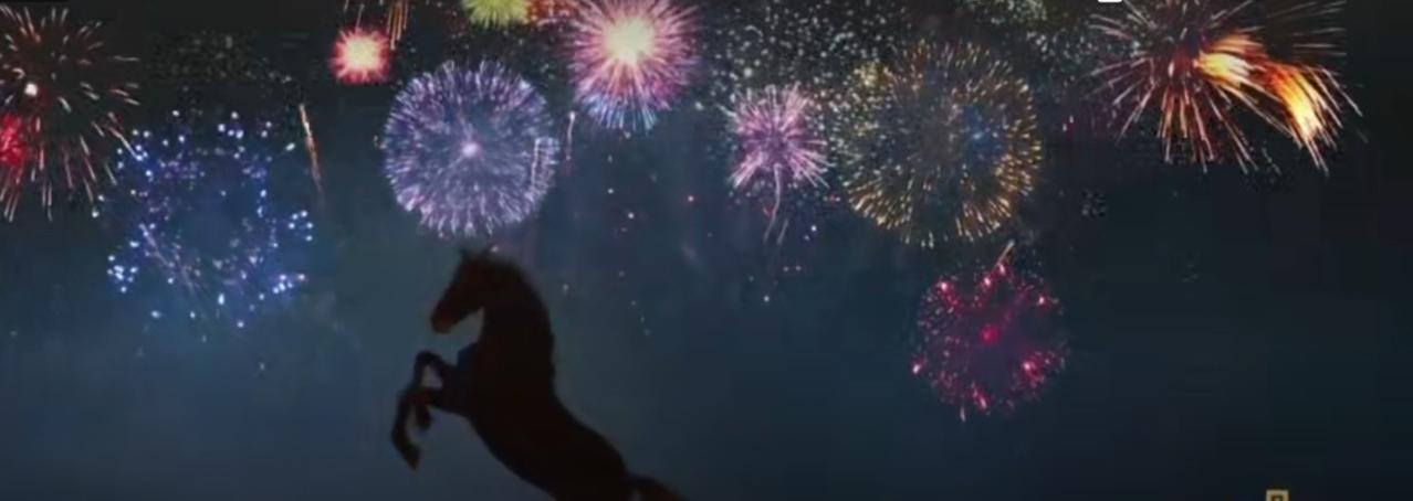2026丙午马年,光影魔术点亮新春舞台。演员们以精准杂耍勾勒金色山峦、蓝色星河,红光跃动间幻化出骏马剪影与巨型红灯笼。“跃马扬鞭,马踏春风”的金色大字搭配漫天烟火,将传统年味与现代光影科技完美融合,定格出震撼人心的新春盛景。