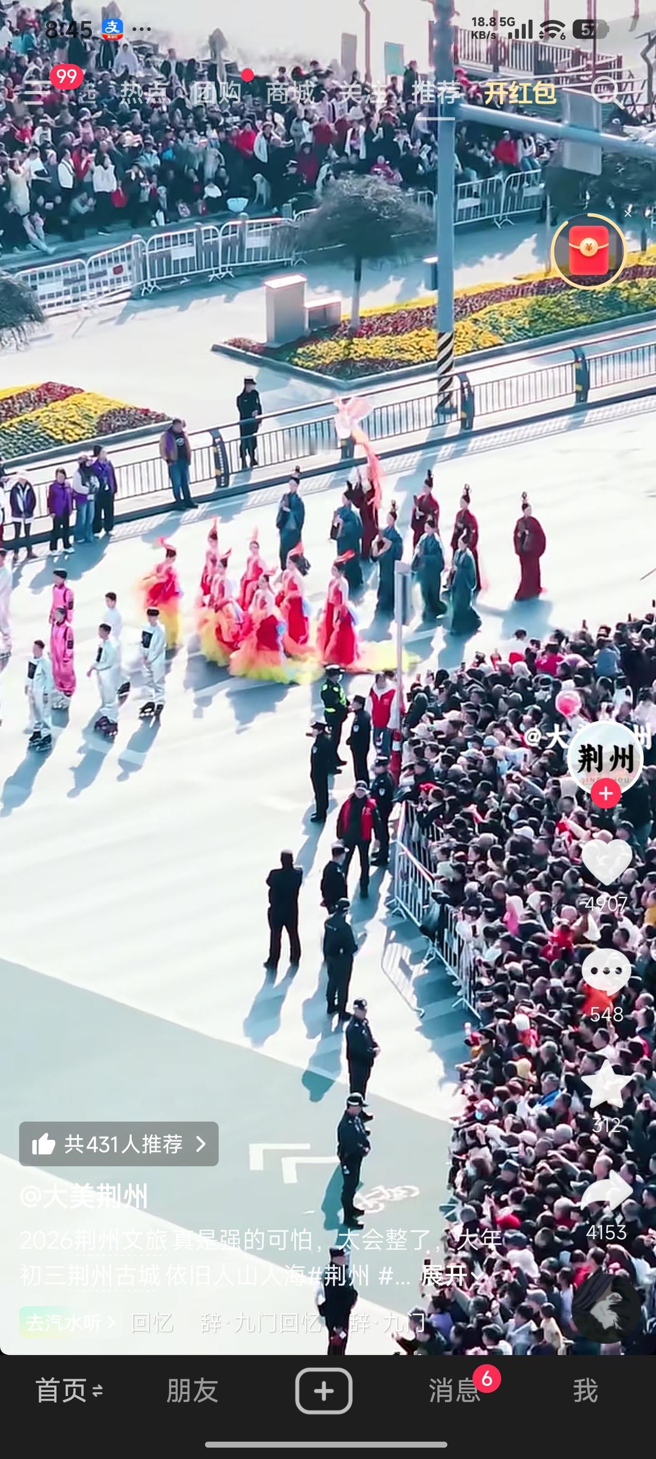 今天去看了现场,狮子还舞了起来,可惜其他的就只是巡游走动,没有舞动起来,稍显缺乏活力。要是都能动起来,荆州的这场巡游就堪称完美了。 蚌壳精和彩龙船建议安排上,这承载着多少中老年人的回忆啊,以前过年时必不可少的节目,理应传承下去。 荆州龙船 潜江彩龙船 荆州舞狮演出 武汉花车襄阳 荆州舞狮舞龙 华容玩狮子 荆州醒狮