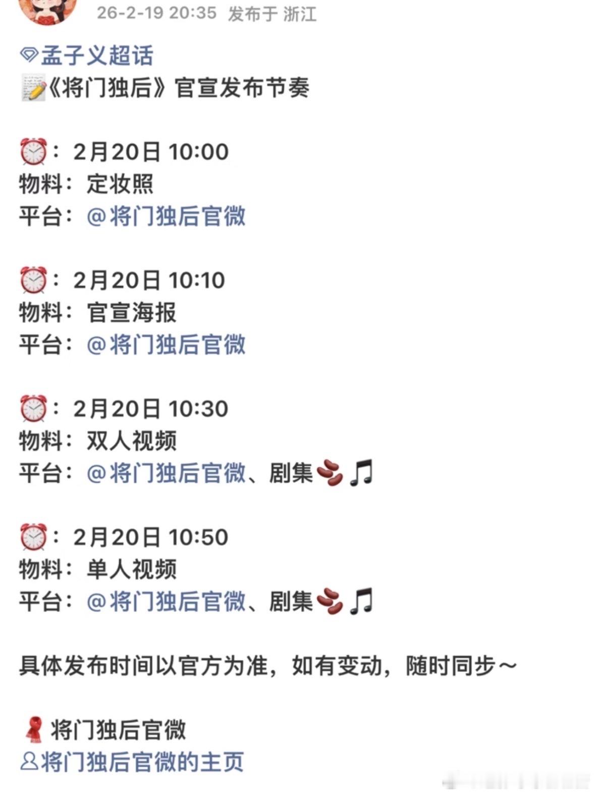 孟子义王鹤棣《将门独后》明天官宣,是谁磕的天地棣义要合作啦