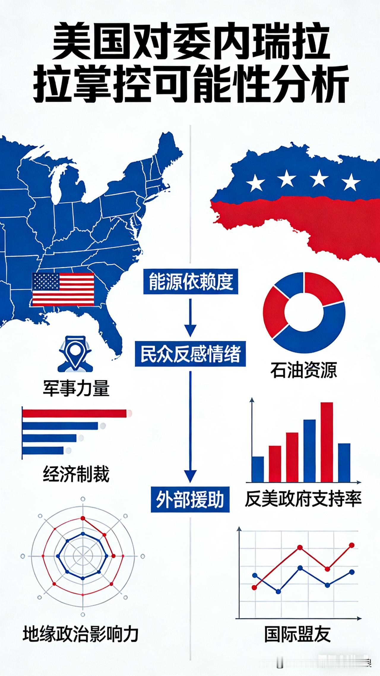 别被表面动作唬住,美国能搞制裁、搞突袭、搞临时控制,但彻底吃定委内瑞拉,门都没有。 第一,民心根本不服。委内瑞拉人反美几十年,街头天天游行护主权,你占得了地盘,管不住人心,硬压只会越压越反。 第二,拉美不买账。美洲早就不是美国一言堂,周边国家普遍反对武力干涉,没人愿意当帮凶,美国孤立无援。 第三,代价扛不住。委内瑞拉有全球最大石油储量,真要全面占领、长期维稳,花钱死人、泥潭缠身,美国国内也耗不起。 第四,国际法不答应。未经联合国授权、强掳他国总统,摆明侵略,全世界都在骂,道义上站不住脚。 美国能搅局、能薅石油、能短期拿捏,但完全掌控一个主权国家,早就过时了。霸权可以逞一时,管不了一世。 委内瑞拉还是委内瑞拉的,不是美国的。 委内瑞拉战局 委内瑞拉主权