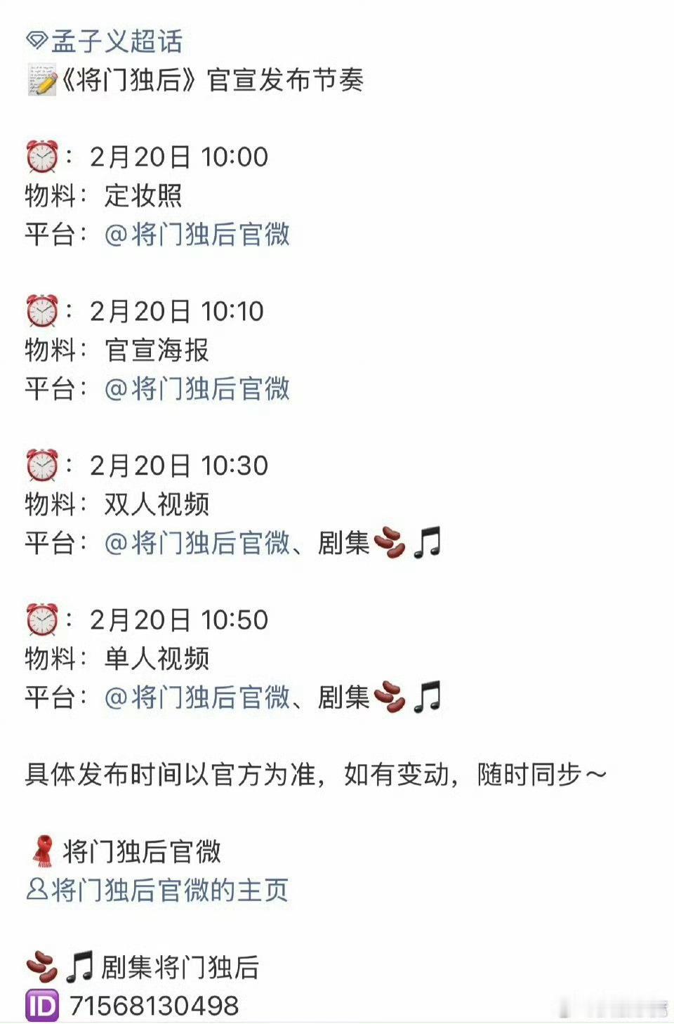 将门独后官宣节奏王鹤棣、孟子义《将门毒后》明天官宣了
