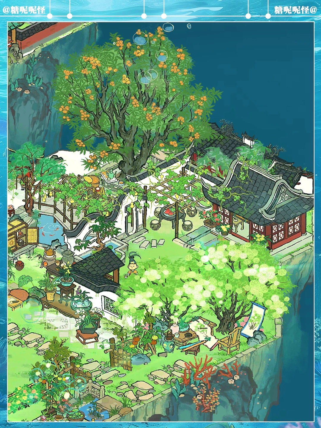🪸地点:龙宫·龙吟台 🪸建筑:消暑闲居|吉祥长廊|亭亭枇杷|落花墙外|千花团簇|别院门廊|农家栅栏|绿影小道|载梦船 知府ID:mhjh3embxr2 从羽翼仙访问我的『糖糖龙宫』:CT79E2465