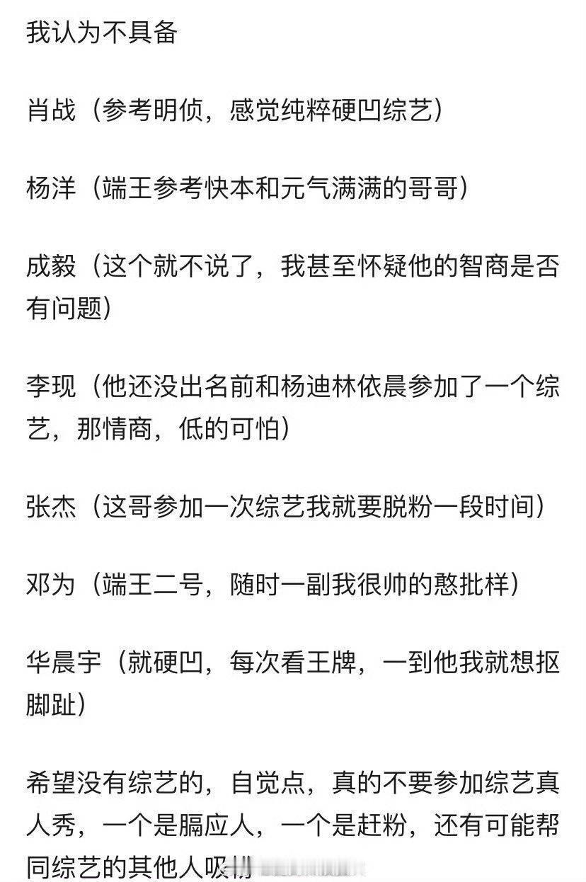 有网友盘点了内娱最具备和最不具备综艺感的当红男艺人,你认同吗?🤔️