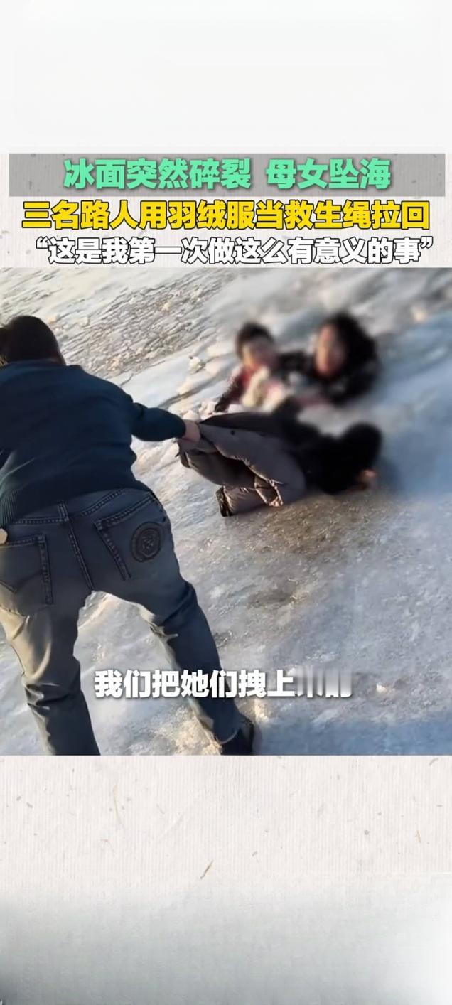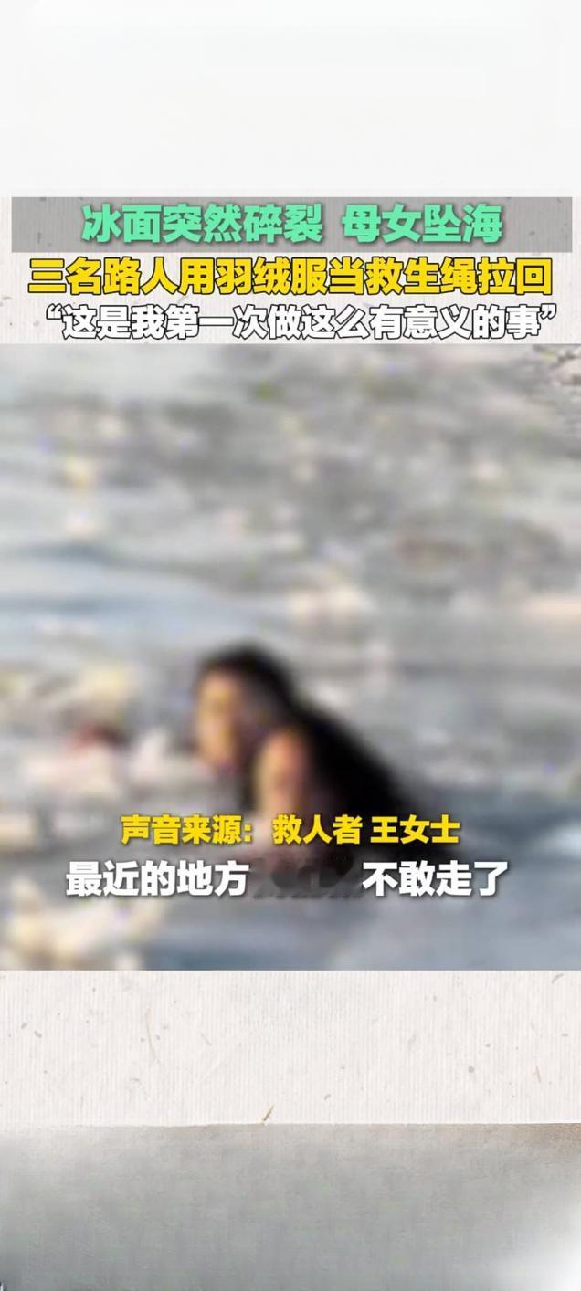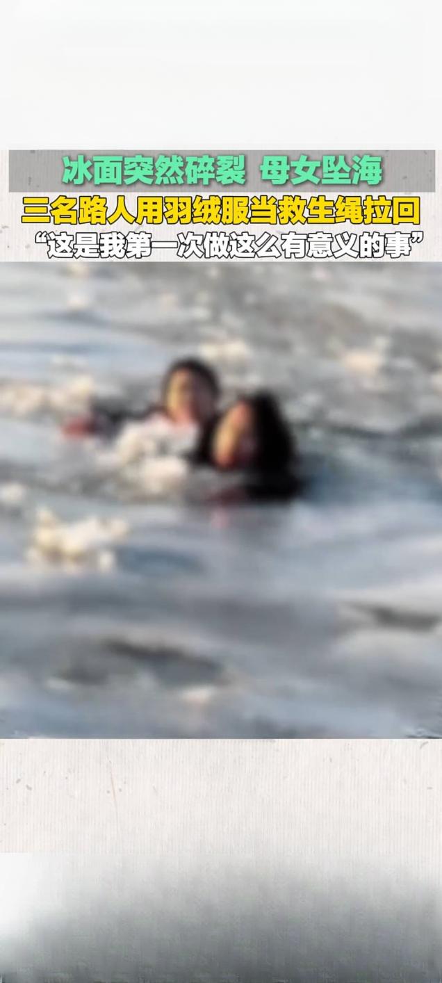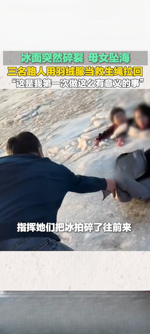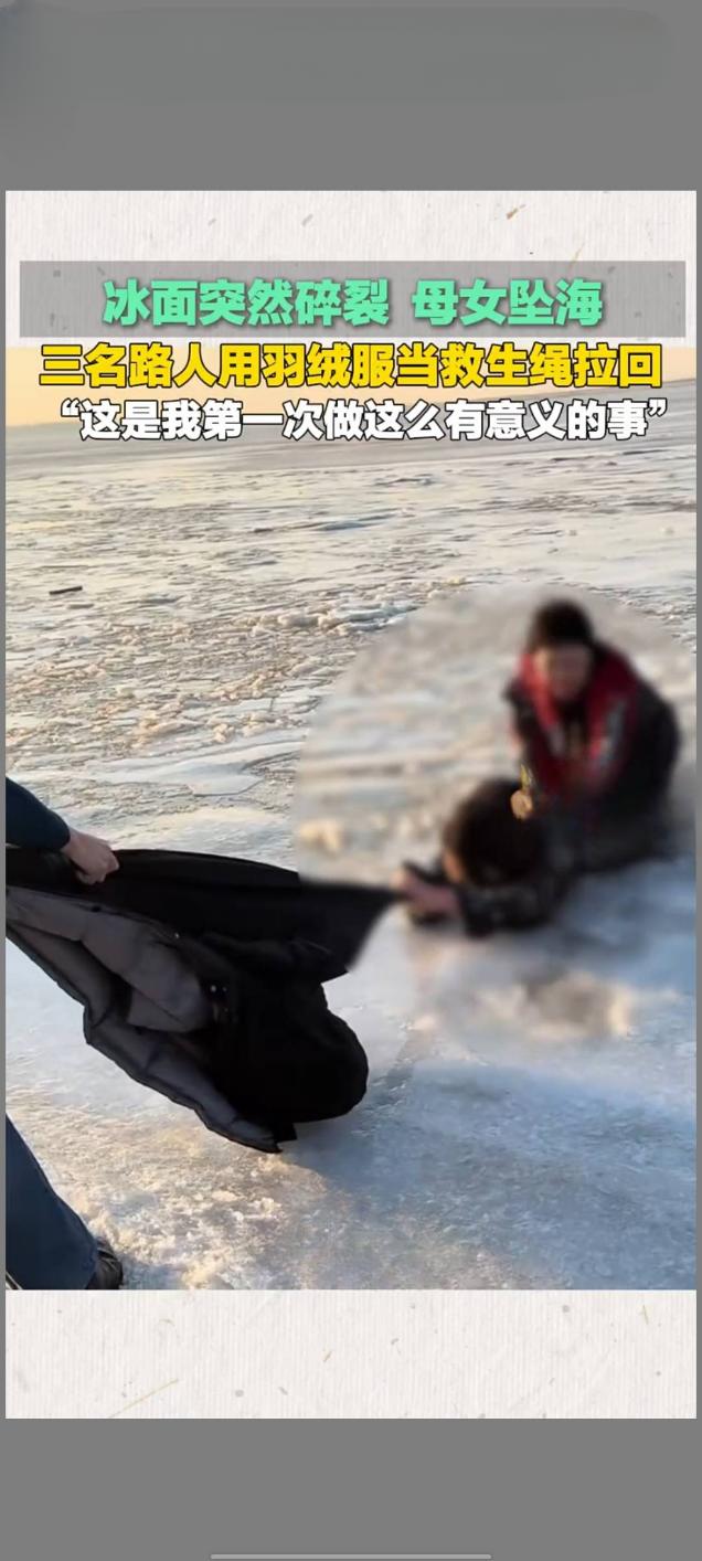 营口冰面碎裂母女坠海 三名路人羽绒服拧绳勇救 2月17日大年初一,辽宁营口鲅鱼圈区山海广场海边发生惊险一幕,一对母女在冰面游玩时,不慎踩破冰层坠入冰冷海水中,危急时刻,三名素不相识的路人挺身而出,用羽绒服拧成“生命绳”成功将二人救回,相关救援视频于2月19日发布后,在快手平台播放量达4.8万次。 事发时海面气温极低,脆弱的冰面随时可能再次碎裂,救援风险极高。途经此处的市民王思奇、王井涛兄妹发现险情后,立即呼救并报警,一名路过男士见状果断脱下长款羽绒服,三人将衣服拧成绳索,趴在冰面边缘合力拉拽水中母女。寒风吹彻、冰水刺骨,三人手冻僵也未松手,历经十余分钟成功将母女拉上岸。 获救后,王思奇将干衣服让给母女,还驱车送二人前往医院检查,确认无生命危险后才默默离开,其本人因受凉高烧仍觉欣慰。被救母女事后致电报平安并提出宴请致谢,被王思奇婉拒。她表示,这是自己第一次做这么有意义的事,希望将这份正能量传递下去,而另一位参与救援的男士截至目前仍未被联系上,三位普通人的善举也温暖了整座城市。冰面救援事故 坠海游客