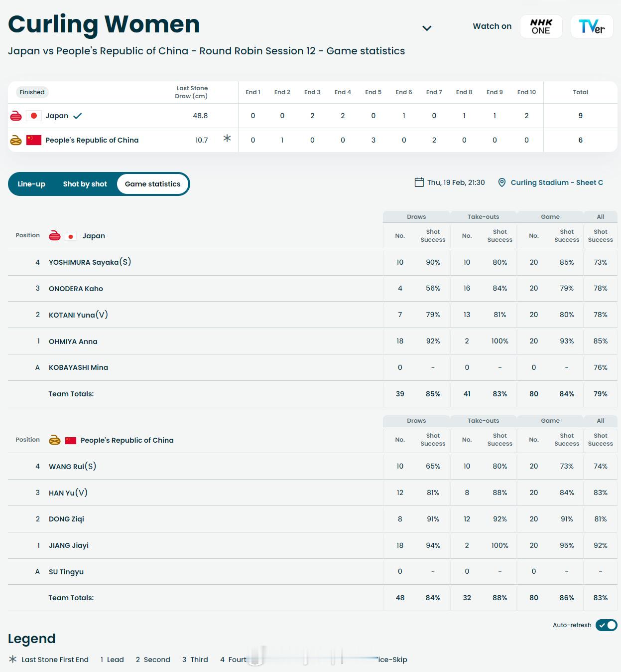 【冬奥女子冰壶中国6-9日本 2胜7负排名垫底完赛】冬奥会 2月19日,冬奥女子冰壶循环赛最后一轮,中国队6-9不敌日本,与意大利和日本同为2胜7负,且胜负关系形成连环套,但中国队DSC最差,排名最后一位。