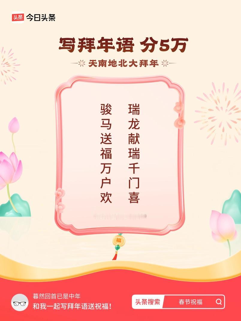写拜年语送祝福新春拜年送祝福!我的祝福是:“骏马驰疆展壮怀,瑞龙献岁启宏图”!快