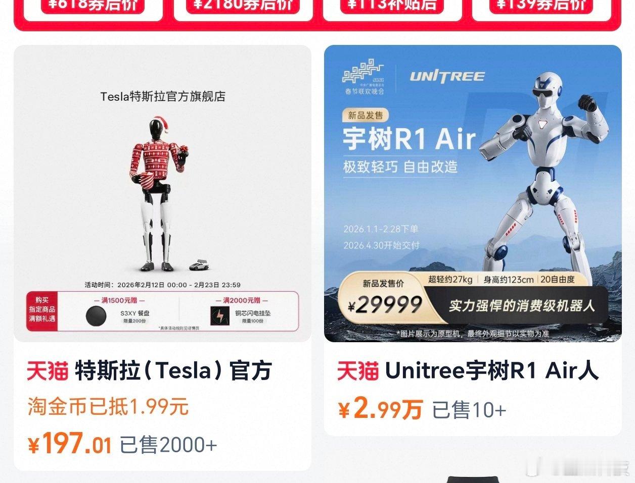 美国特斯拉,在平台卖机器人手办,优点立马交付,缺点科技含量太低中国宇树科技,在平台已经开始卖人形机器人了,优点科技含量拉满,缺点有点小贵