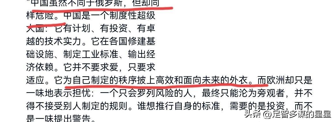 中国真的像德媒说的“危险超级大国”吗? 2月17日,德国之声发文称,中国已成为全球制度性超级大国,不同于俄罗斯,却同样“危险”。文章强调中国不仅技术强大、投资广泛,还积极在世界各地修建基础设施、制定标准,让各国形成经济依赖。德媒甚至把中国比作现代帝国主义,用隐蔽的经济手段影响世界秩序。 但说到底,欧洲面对自身问题时,总喜欢把中国当成假想敌。这种观点其实更多反映了欧洲内心的焦虑和不安。文章虽肯定了中国的先进技术和国际影响力,但把互利共赢的经贸合作贴上“危险”标签,显然有些夸大其词。中国推动的是合作,而不是对抗。 西方媒体这种偏见难免让人觉得荒谬。中国与欧洲本可以是伙伴,非要制造对立,是不是只会让欧洲更难走出困境?这种论调,只能说是“心虚”的表现,不值得我们太在意。