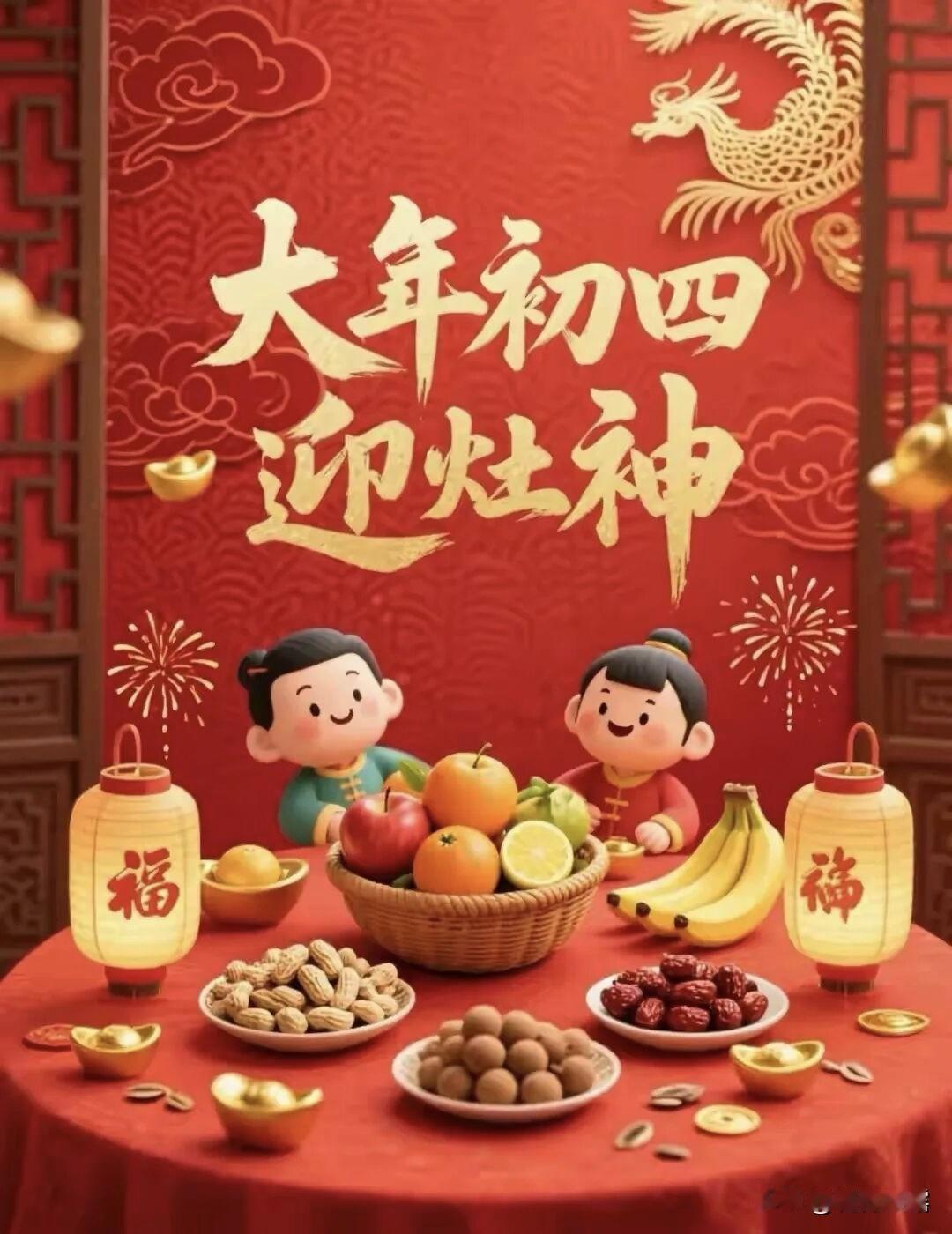大年初四拜个年,平安喜乐常相伴,家和业兴万事安。愿初四如意,安居乐业,岁岁静好,福气盈门, 吉祥好运‬迎门来,福星高照万家安,出入皆平‬岁顺遂! 大年初四,灶神归位,福气满门。愿您在新的一年里,如灶火般红红火火,事业蒸蒸日上,家庭和和美美,财源广进,岁岁平安。 2026年2月20日,丙午年正月初四。迎神纳吉,四季平安。愿这一年,有人与您并马而行,共看繁花,岁月静好,幸福常伴。