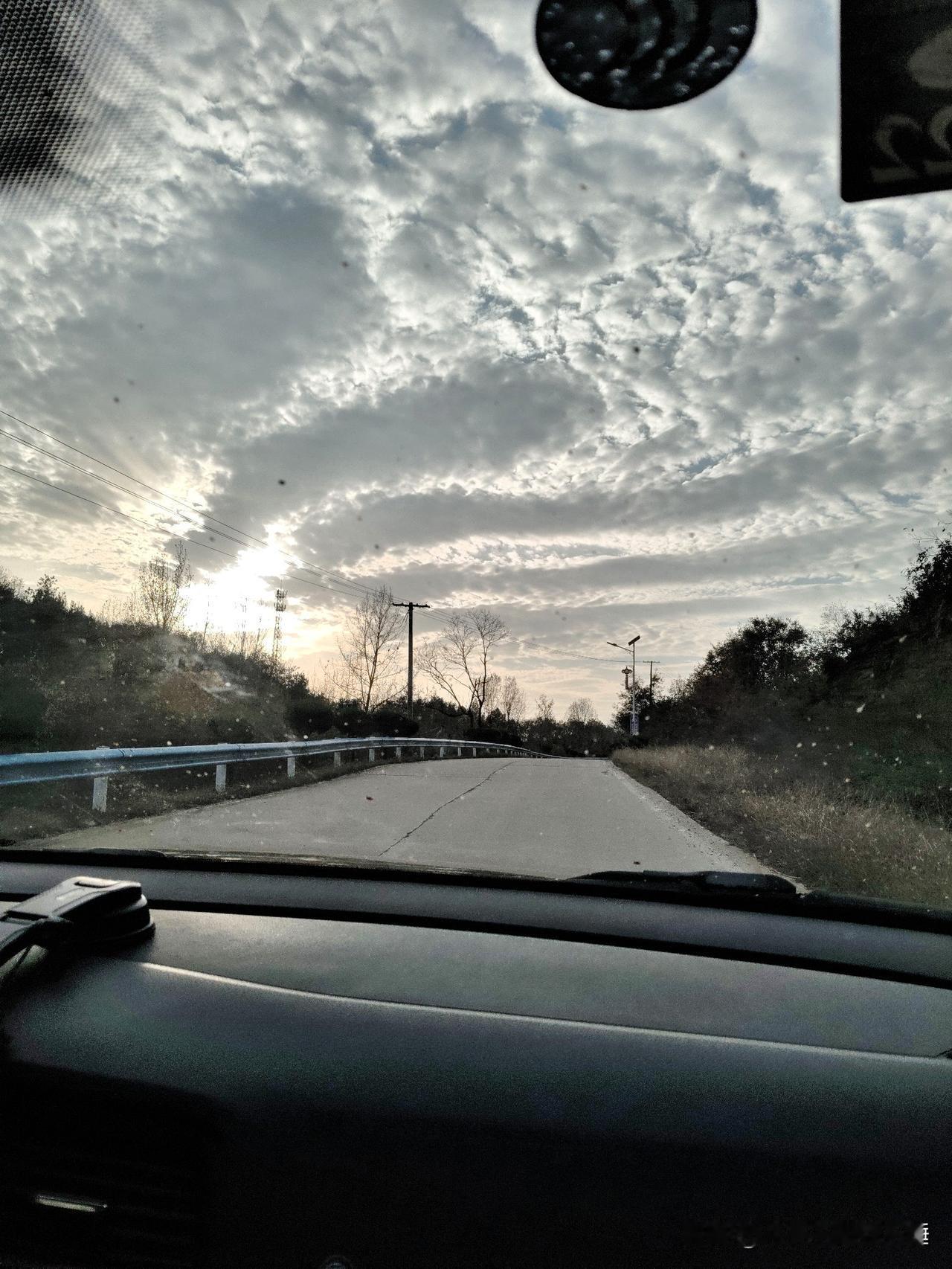 今天开着车往山里走,路不算宽,两旁的草都黄了,树也落了,看着有点萧瑟,但风一吹又特别清爽。 天上的云碎碎的,像被揉开的棉絮,太阳从云缝里钻出来,把路面照得亮堂堂的。我就这么慢慢开着,也不着急去哪,就想在山里多待一会儿。 平时在城里总觉得日子赶得慌,这会儿看着远处的山、路边的树,心里一下子就静下来了。偶尔有鸟从头顶飞过,声音脆生生的,好像在跟我打招呼。 这种不用想工作、不用赶时间的感觉,真好。就想这么一直开下去,把所有烦心事都丢在身后。