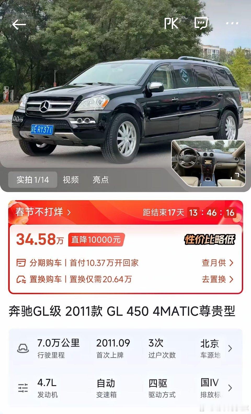 15年前的奔驰卖34万,北京的二手车这么保值吗?不过价格不是我关注的重点,明码标价就好,重点是过户3手,才开了7万公里?!