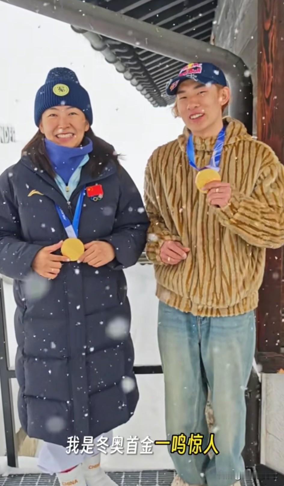 太逗了!苏翊鸣和徐梦桃实现赛后宣言。 俩人合体拍视频! 还各自起了一个很有寓意的名字:翊鸣鸣惊人和梦想成真。 结果昨日宁忠岩又获得第3金。 网友留言:你们咋不等着宁忠岩呢? 徐梦桃留言:我和宁忠岩在猿辅导“早已”料到顶峰相见。 网友也给宁忠岩起了一个顺耳的名字:岩而有信。 目前中国运动健儿已经拿到3金,按照籍贯已经实现黑吉辽合体。 奖牌榜上也从第14上升到第12名。 后面谷爱凌的U型池还未上演,我们至少还有1—2金牌入账。 可惜中国男女冰壶团体都排名垫底,遗憾无缘晋级前4强!