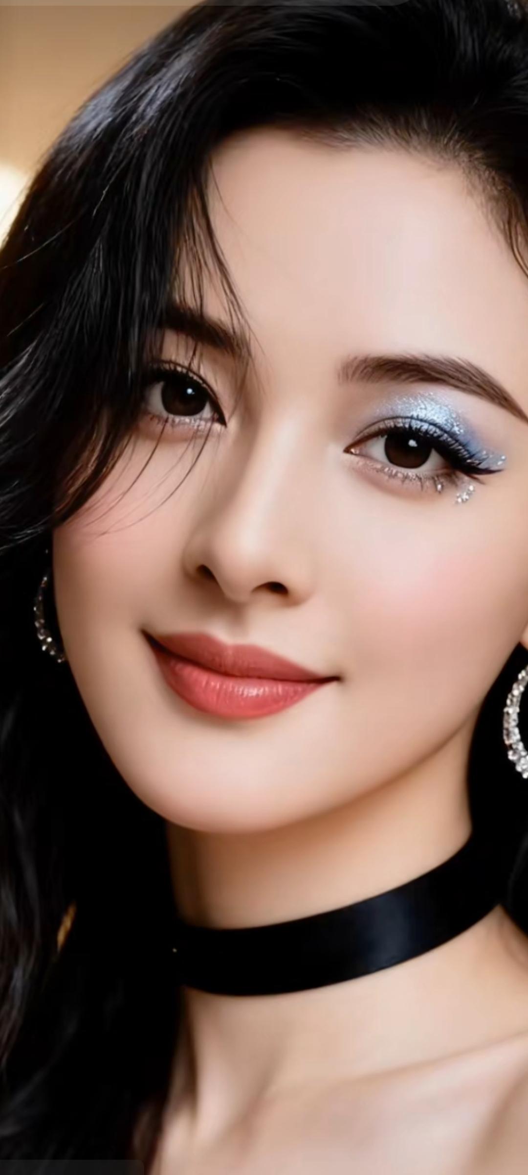 优雅黑发美人,闪耀眼妆与耳环,尽显魅力!