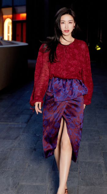 朱珠棕色编制细高跟写真照片