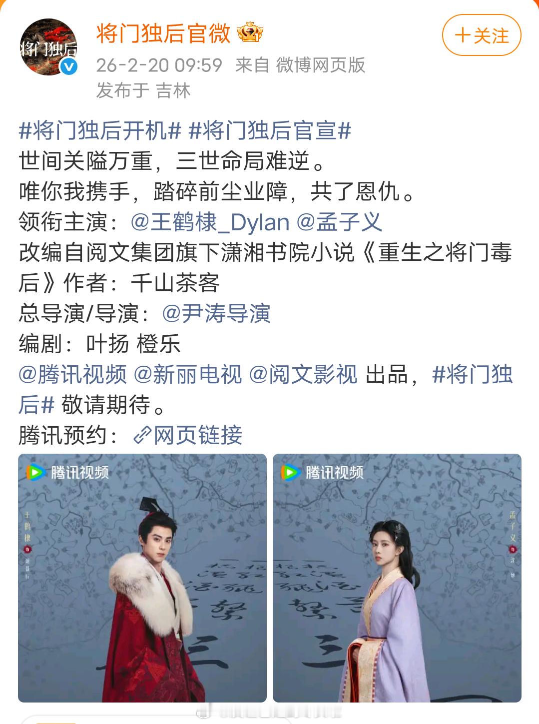 《将门独后》官宣,王鹤棣一番孟子义二番但是这个定妆怎么这么灾难?苍兰诀同款妆造团队也掩盖不了的土气和老气,廉价风,质感也很差,书粉彻底死心了。将门毒后 将门独后开机王鹤棣孟子义 将门独后