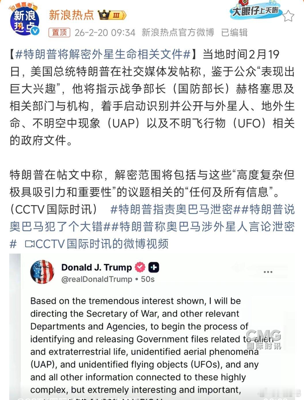 特朗普将解密外星生命相关文件 我来告诉你们,为什么奥巴马这个时候在搞这套所谓的外星人论,其实就是配合大漂亮的阴谋论和降临派在打击特朗普。本质上这群人其实就是属于反政府的。