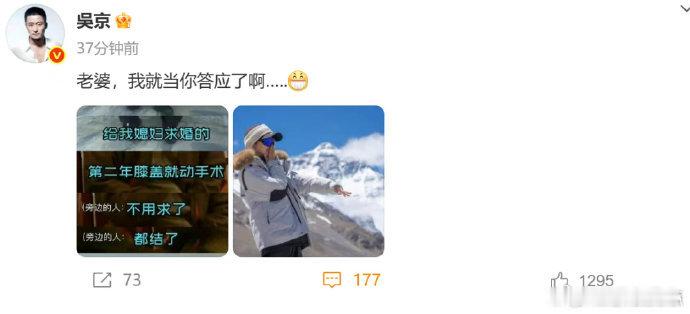 吴京 我的夫人姓谢在娱乐圈这个纷繁复杂的大舞台上,有许多令人瞩目的明星夫妻,而吴京和谢楠这一对,无疑是备受关注的典范。吴京一句 “我的夫人姓谢”,简单的话语背后,却蕴含着深厚的情感与责任。吴京,这位以刚猛形象深入人心的动作巨星,在银幕上他是英勇无畏的战士,用热血和汗水诠释着一个个精彩的角色。从《战狼》系列的冷锋,到《流浪地球》里的刘培强,他塑造的形象激励着无数人。然而,在生活中,他却是谢楠温柔的丈夫,是家庭的顶梁柱。谢楠,作为知名主持人,她自信大方、聪慧知性。她与吴京的爱情故事,就像一部浪漫的电影。两人相识后,彼此欣赏,很快便携手走进了婚姻的殿堂。在吴京为了自己的电影梦想而拼搏时,谢楠给予了他坚定的支持。吴京拍摄《战狼》时,面临着资金短缺等诸多困难,谢楠一句 “我还有一个小房子,卖了吧”,这份信任与支持,让吴京能够毫无顾虑地去实现自己的理想。他们的爱情,不仅仅是风花雪月的浪漫,更多的是相互理解和共同成长。吴京在事业上取得巨大成功后,并没有忘记家庭的责任。他会抽出时间陪伴谢楠和孩子,享受温馨的家庭时光。而谢楠也在背后默默操持着家庭,让吴京能够安心在外打拼。在如今这个快节奏的社会,很多人对爱情和婚姻充满了迷茫。据相关调查显示,近年来离婚率呈上升趋势,人们似乎越来越难以坚守一份长久的感情。而吴京和谢楠的爱情,就像一盏明灯,给我们树立了榜样。他们用实际行动告诉我们,真正的爱情是相互扶持、相互成就,在困难面前不离不弃,在成功时共同分享喜悦。吴京那句 “我的夫人姓谢”,不仅仅是简单的介绍,更是一种宣告,宣告着他对谢楠的爱和承诺。在这个充满诱惑和变数的世界里,他们的爱情故事让我们相信,只要心中有爱,有责任,婚姻就能够经得起时间的考验。吴京和谢楠的爱情故事,是娱乐圈的一段佳话。他们在彼此的人生中扮演着重要的角色,相互支持,共同成长。在这个浮躁的社会里,他们用行动诠释了爱情的真谛,让我们看到了爱情和婚姻最美好的样子。希望他们能够一直幸福下去,也希望他们的故事能够激励更多人去珍惜身边的人,坚守自己的爱情和家庭。