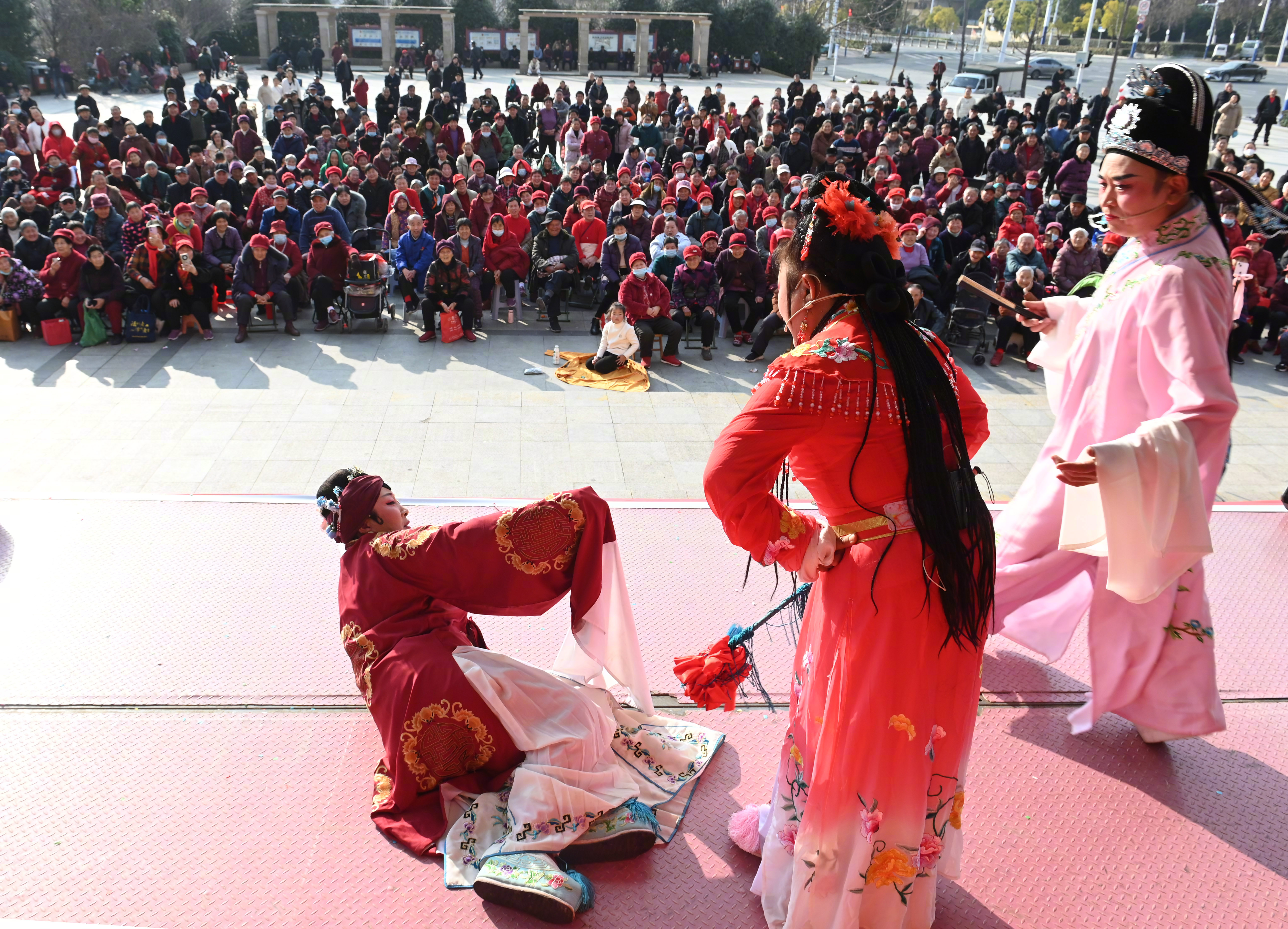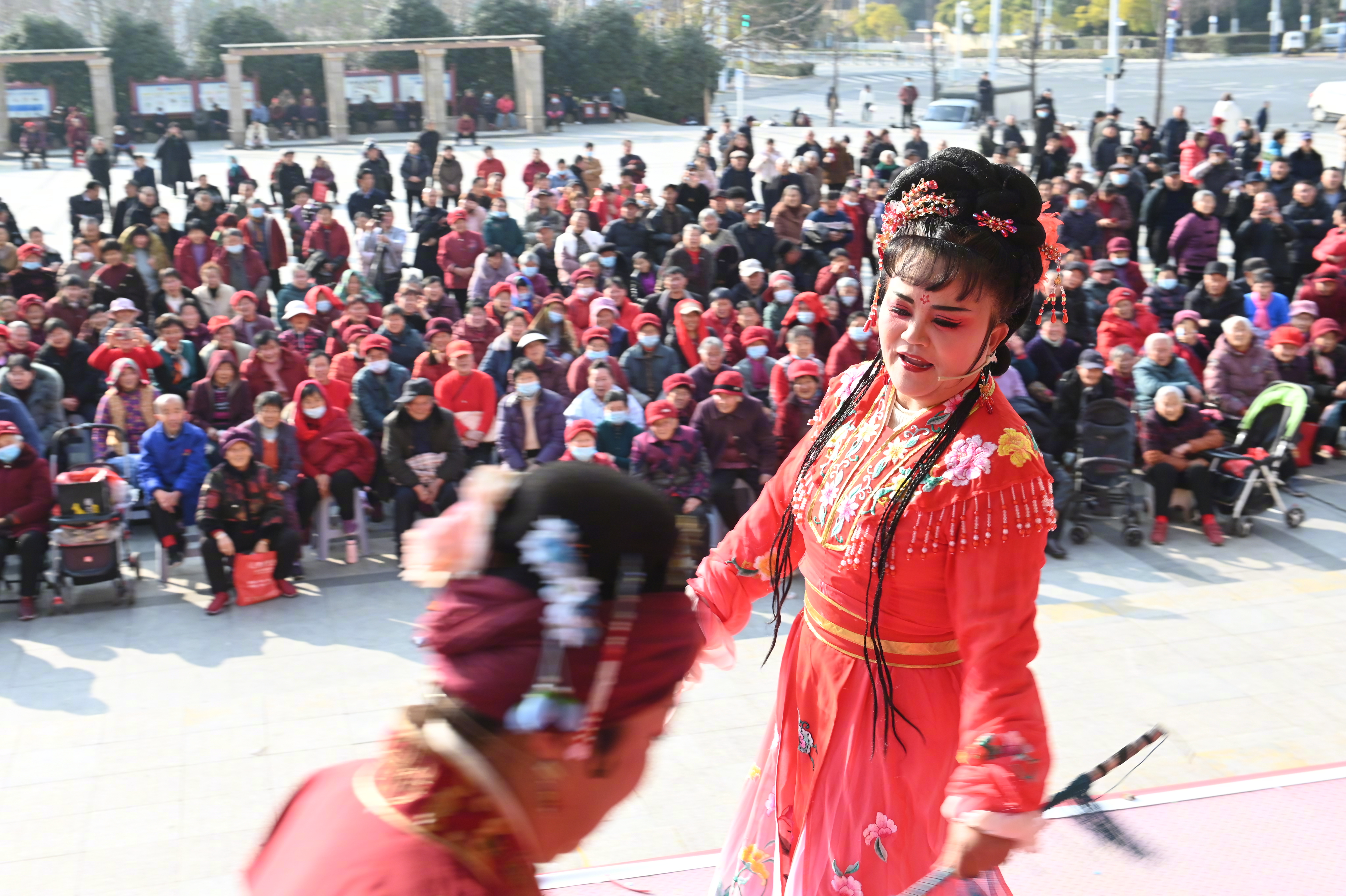 包河区文化和旅游局相关负责人称,送戏进万村,唱的是家长里短,聚的是邻里亲情,暖的是百姓心窝。春节期间,包河区将陆续举行28场“送戏进万村”惠民演出活动,让文明新风随着这传统戏剧的优美旋律吹进群众心中。(大皖新闻记者 张洪金 摄影报道)