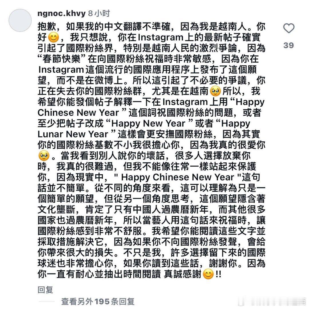 梓渝Happy Chinese New Year中国人就要说Happy Chinese New Year 支持不含糊,坚持文化立场的梓渝,明知道会挨骂但是保护文化,正确引导粉丝,这才是我们应该追的星梓渝从个人到工作室,从初一到初三,一直都是happy Chinese New Year!梓渝粉丝,越南和韩国的粉丝超级多,已经被骂了但还是坚持自己立场确实刚,也有人因为他改变了叫法中国春节最早可追溯到3000年前,是由中国农历(NONG LI),也就是阴阳合历,根据太阳和月亮的运转周期,根据中国经纬度,制定了二十四节气,以便于农耕获取良好的收成,并确定农历第一天为新年的第一天。