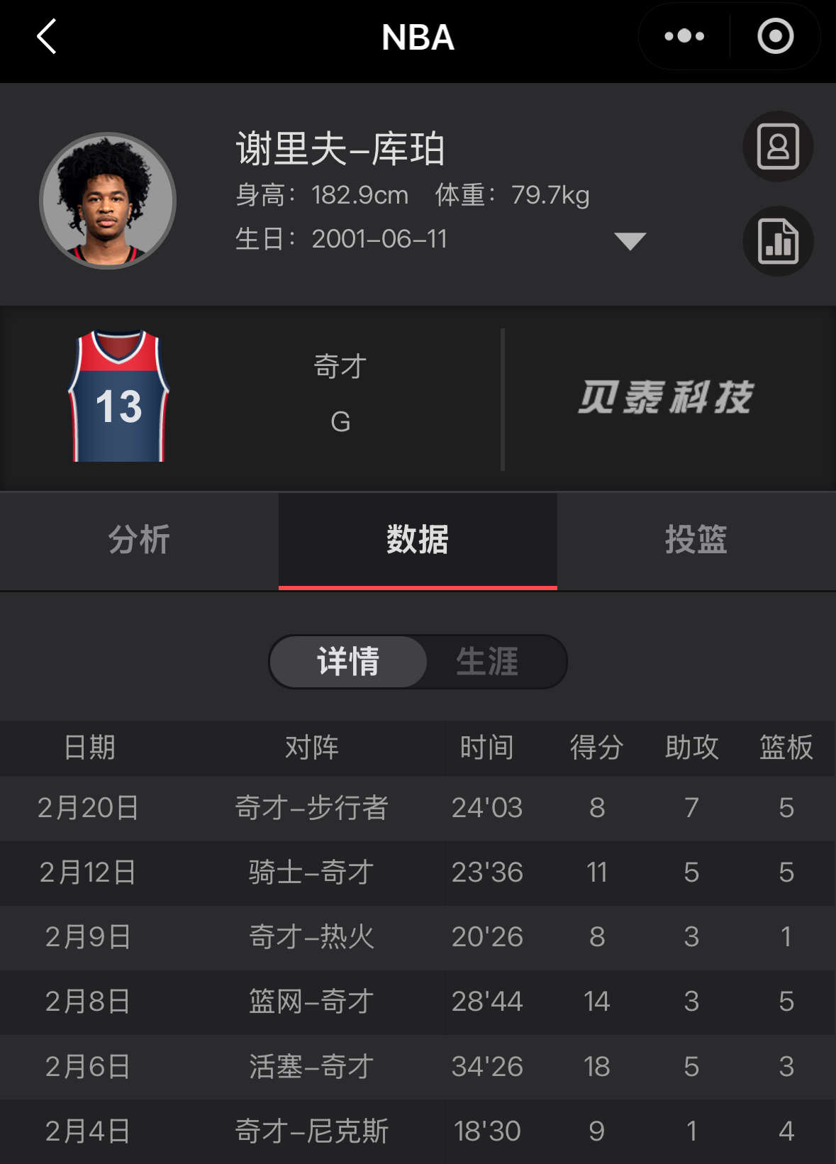 今日奇才战胜步行者的比赛中库珀出场24分钟得到8分5篮板7助攻2抢断库珀最近6场比赛场均可以得到11.3分4助攻3.8篮板绝对证明给他时间,他可以有好的表现