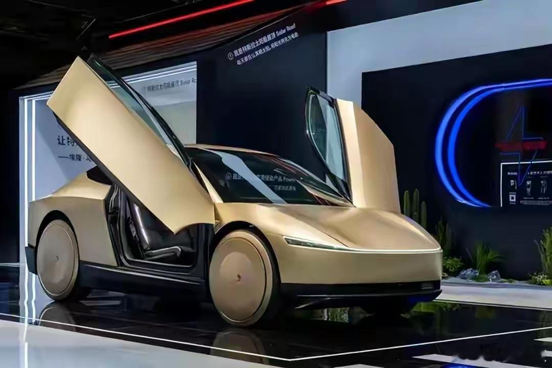 外观是那种科幻风的蝴蝶门轿跑,内饰极简到只剩一块屏幕。动力上配了小于50度电池,续航能干到近500公里,大概率用无线充电,连充电口都省了。