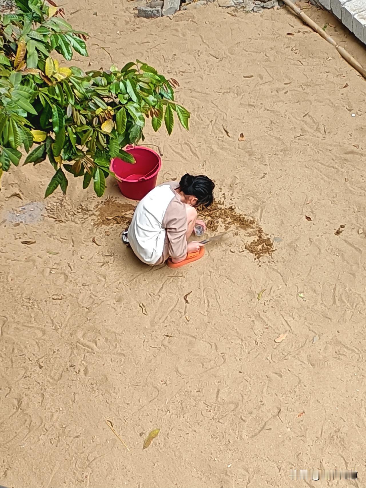 小朋友果然都是喜欢玩泥沙的,不分男女,不分城乡,也不分时代,以前自己喜欢玩,现在的小孩子依旧喜欢玩,领居平常在城里生活的小孩,过年回乡下,看到门前新填的这一块沙地,自己一个人也要玩泥沙。