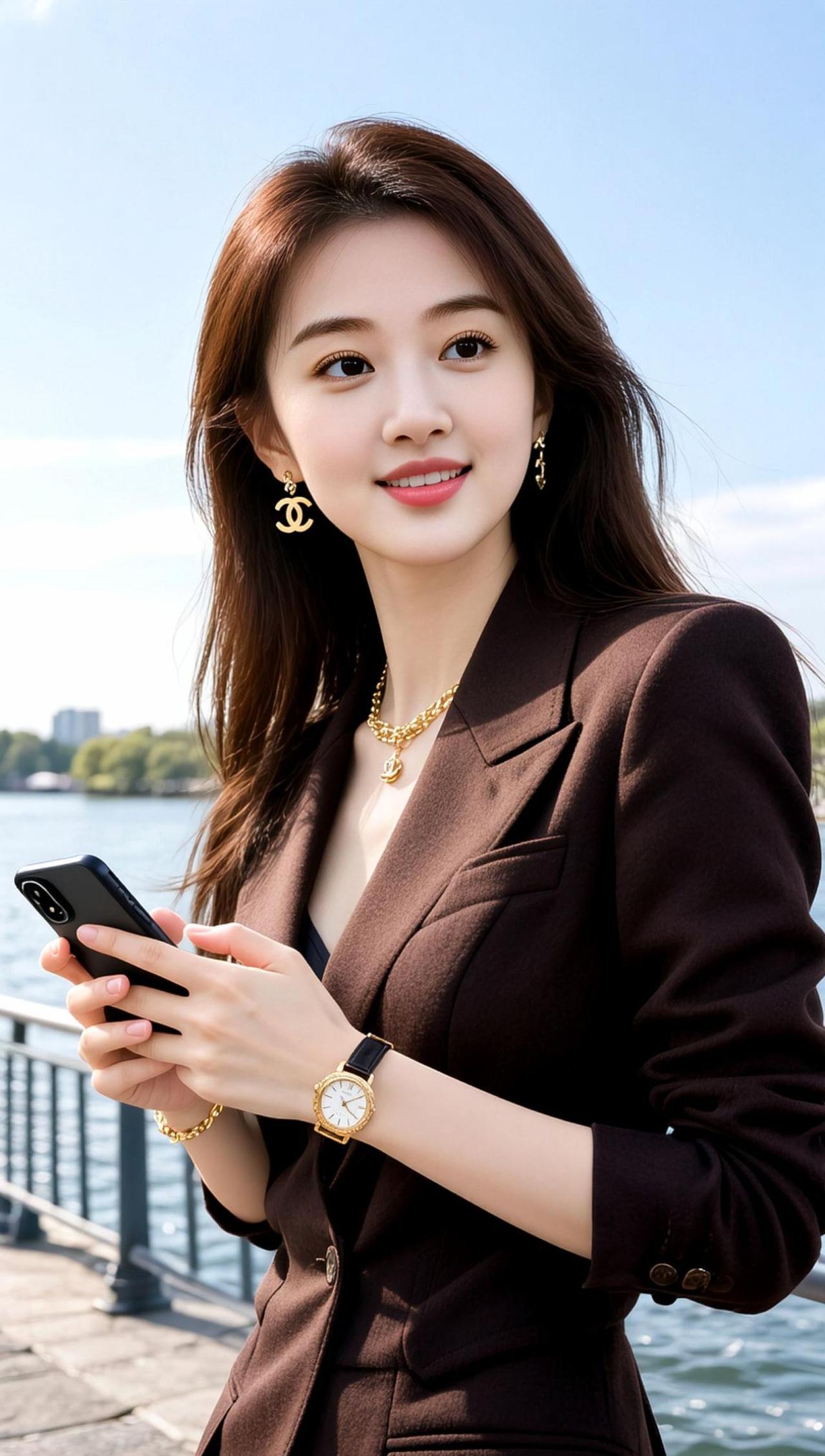 AI湖畔轻熟照 抖音ai创作 气质西服套装 气质美女 优雅女神气质穿搭