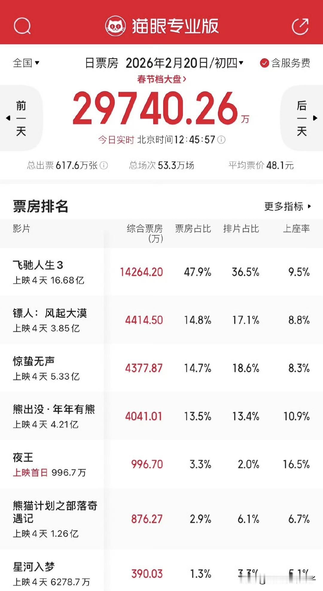 沈腾,真的赢麻了! 今年的春节档,依旧有很多影片上映,说实话,本以为票房会竞争激烈,出现神仙打架的趋势,然而……并非如此 2月20日,网上最新数据,沈腾主演的电影《飞驰人生3》上映四天,票房已经突破16亿,稳居第一的位置,不能说,成碾压之势, 差距确实不小,就现在这个成绩,回本自然不用多说,估计赚的钵满盆满,真的是赢麻了。 此外,沈腾参演影片的总票房,已经超过吴京,暂时排在第一位,确实厉害。 话说,吴京主演的《镖人》,阵容非常强大,看预告片也挺精彩,这样的票房,有点出乎意料,能否后来居上,值得期待。 不过,已经大年初四,再过两天,都陆续的上班了,估计去电影院的也少了,想要票房逆袭,不太容易。 如此看来,春节档的电影,除了质量过硬,喜剧类型比较受欢迎,毕竟,过年了,就图个开心快乐。