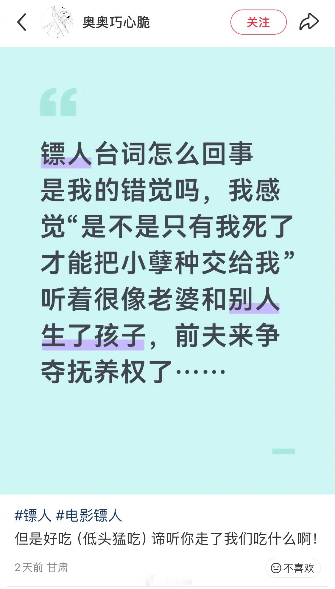 镖人 嗑CP电影镖人 网友:我发现《镖人》有两个地方很适合接吻此处应引用《战狼1