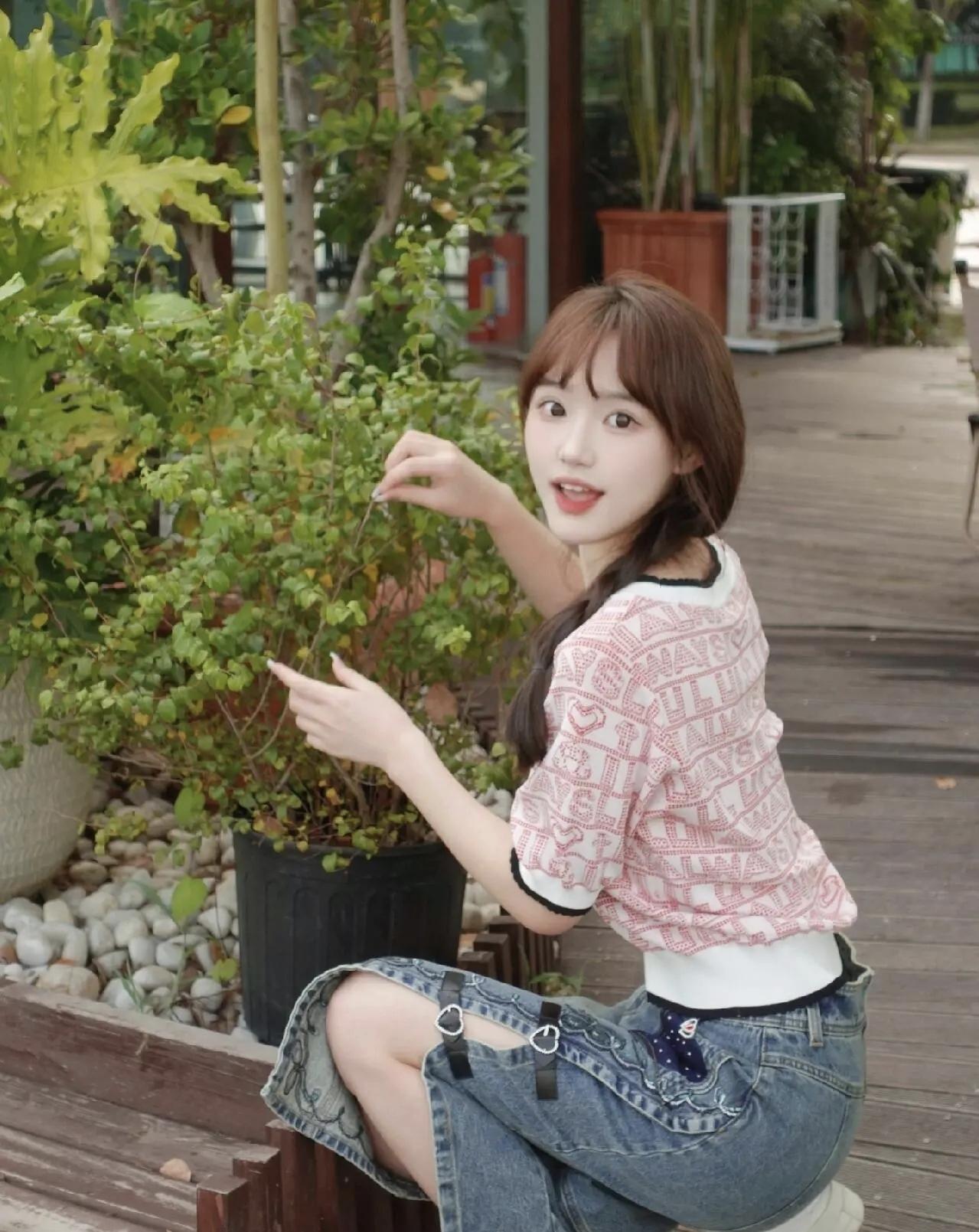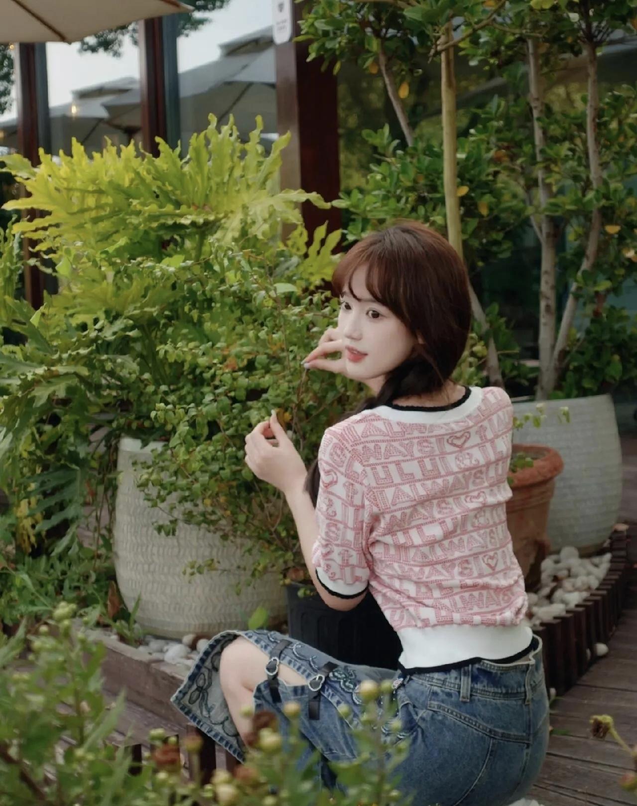 少女心爆棚的甜美穿搭,粉色印花T恤搭配牛仔裙,阳光下的清新可爱!🌞💕