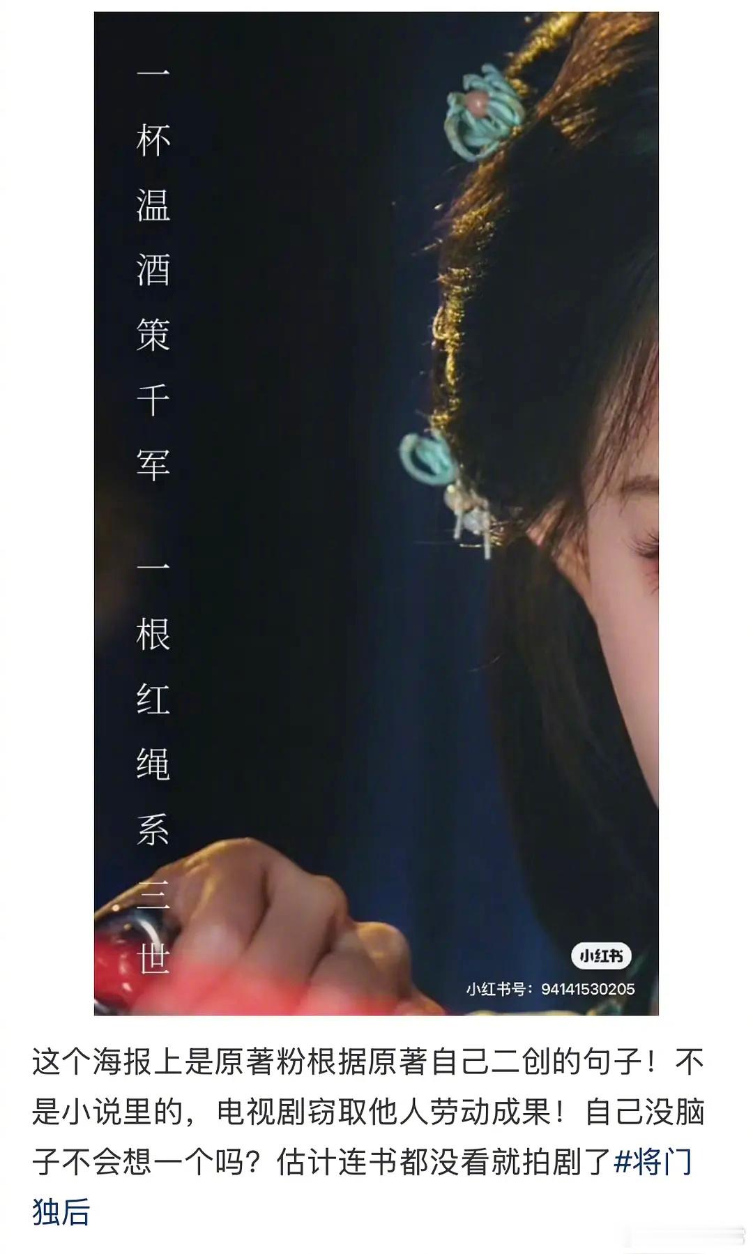 《将门独后》海报上的文案是书粉二创的将门独后官宣王鹤棣孟子义