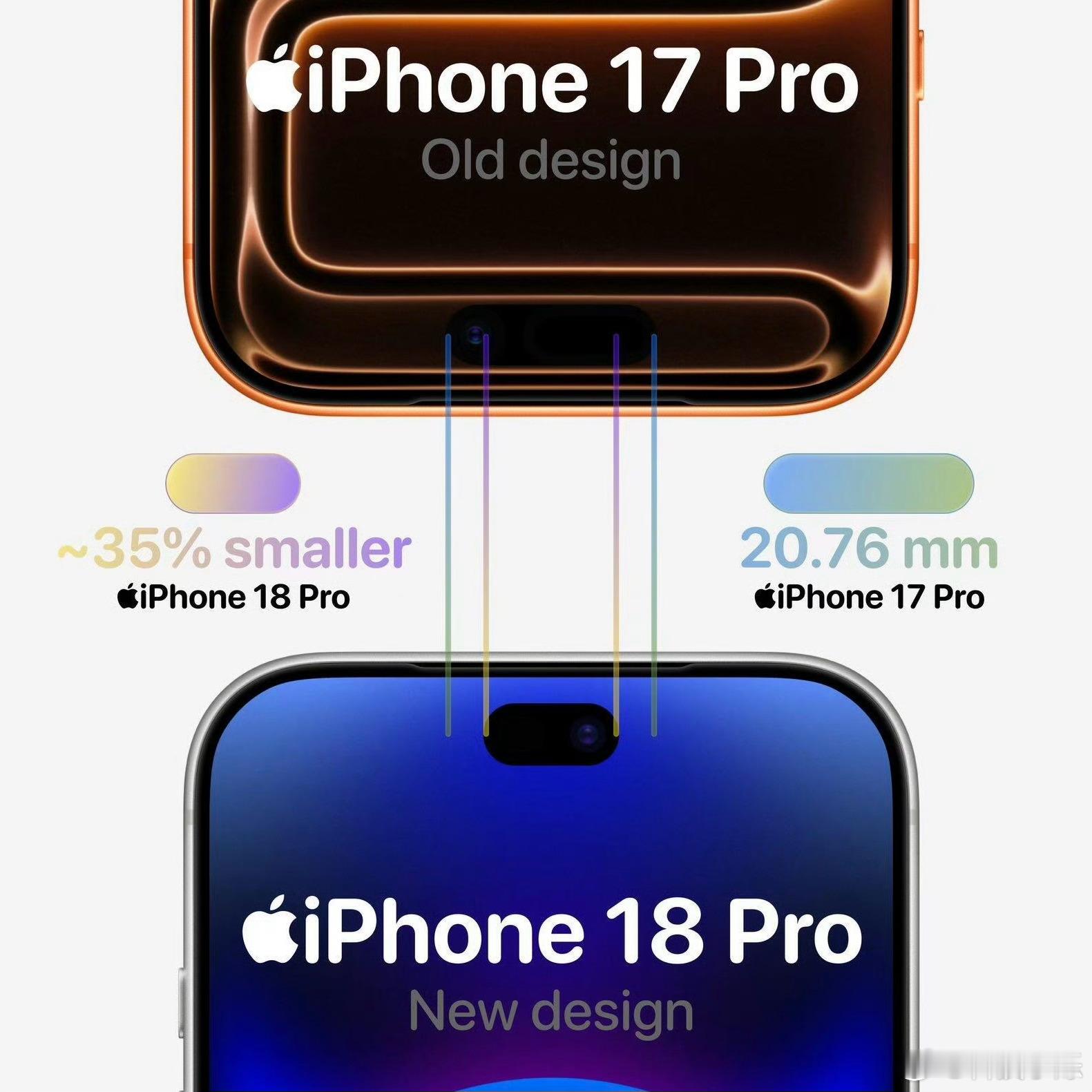 iPhone 18 Pro的灵动岛宽度将缩至 13.49mm,缩减幅度高达 35%,高度基本不变,整体面积也随之大幅减小。