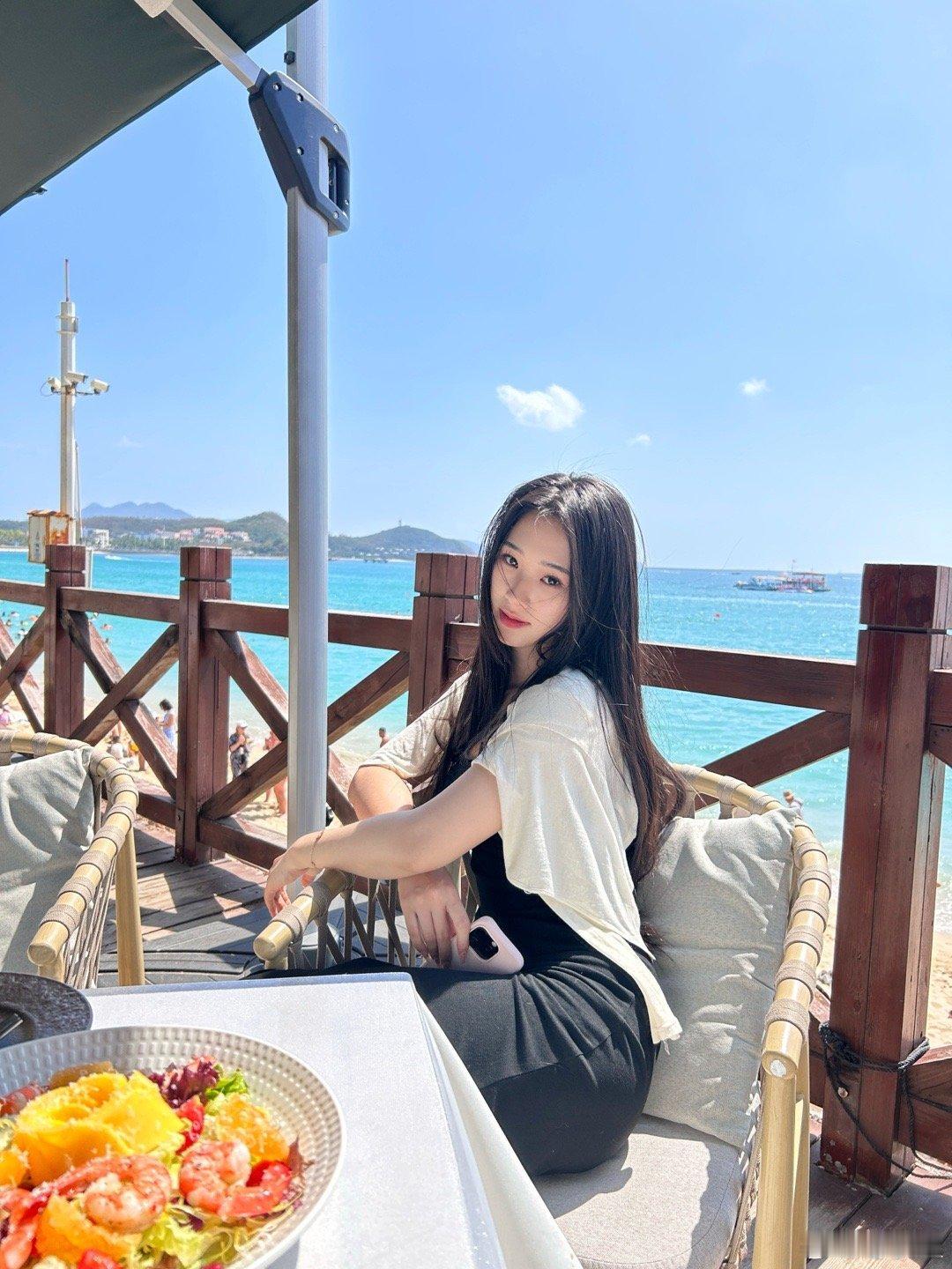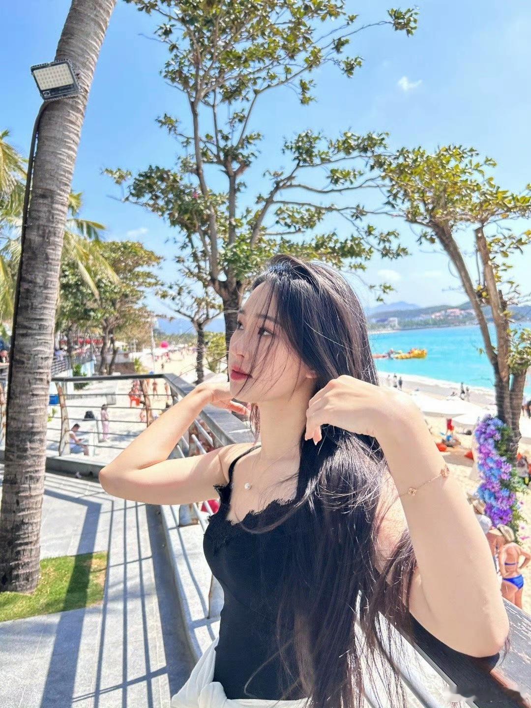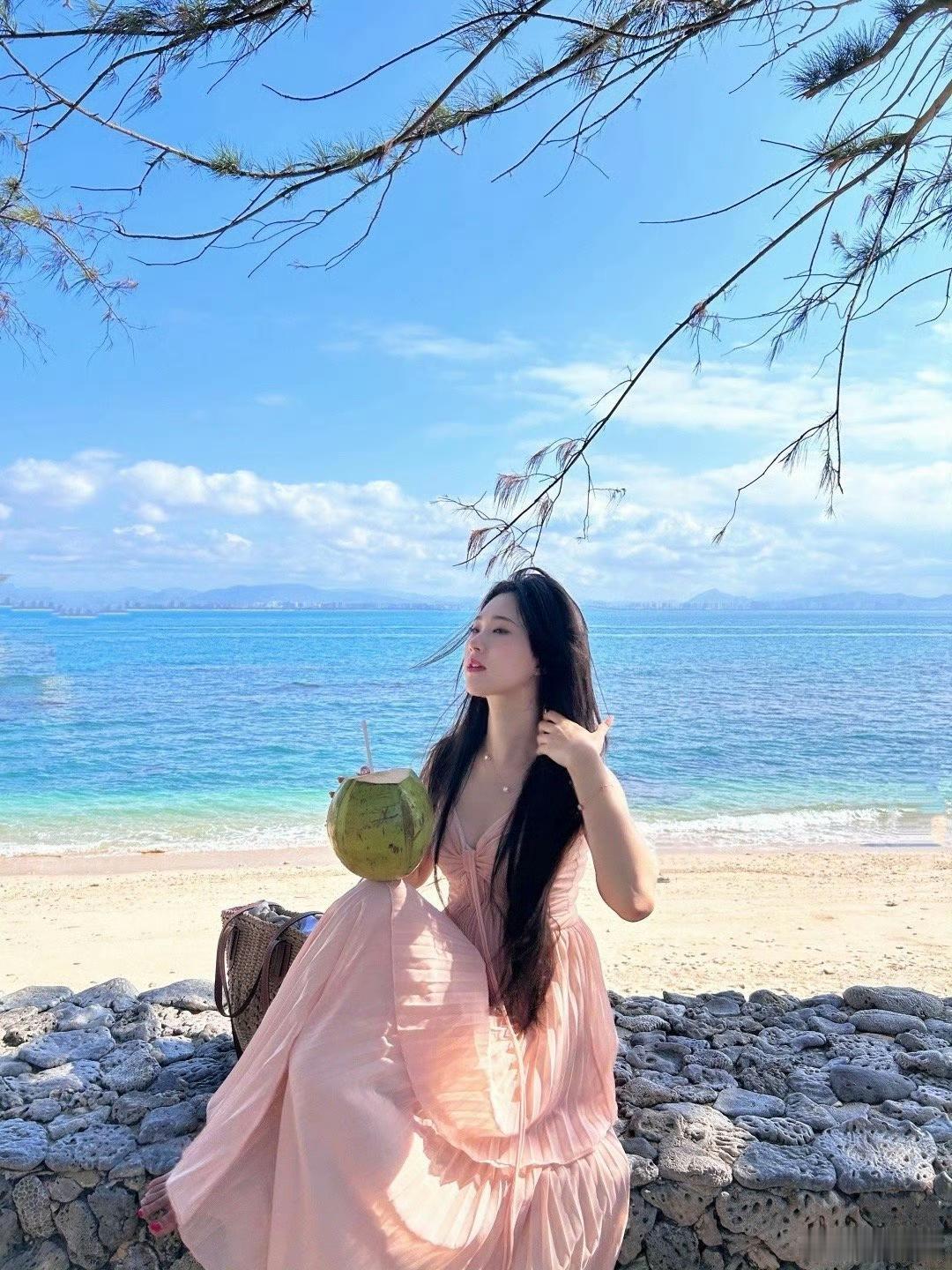 海边的浪漫时光,粉裙飘飘,椰风拂面