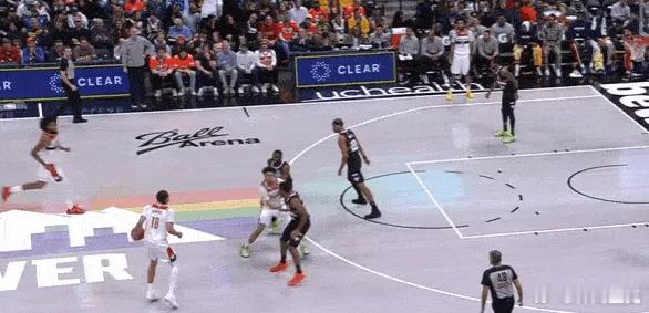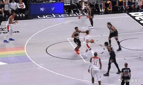 8、9、10、11莱利先是在“西班牙挡拆”中外弹至右翼接球,随后再衔接和同侧底角队友上提后的挡拆配合,行进间使用跳步犹豫后立即回拉,抓篮网换防间隙坚决出手持球三分,手起刀落。