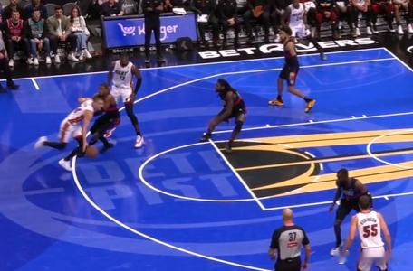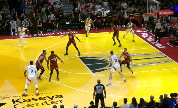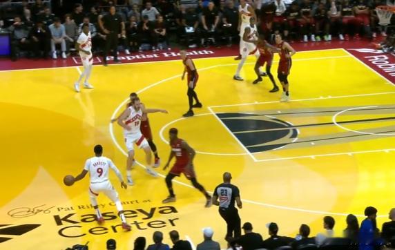 6789乐福外出执行夹击,海史密斯指挥邓罗准备回收垫防,自己来兼顾弱侧一防二,识破波尔特尔传球意图后箭步上前并张开双臂,成功破坏其给巴恩斯的传球。
