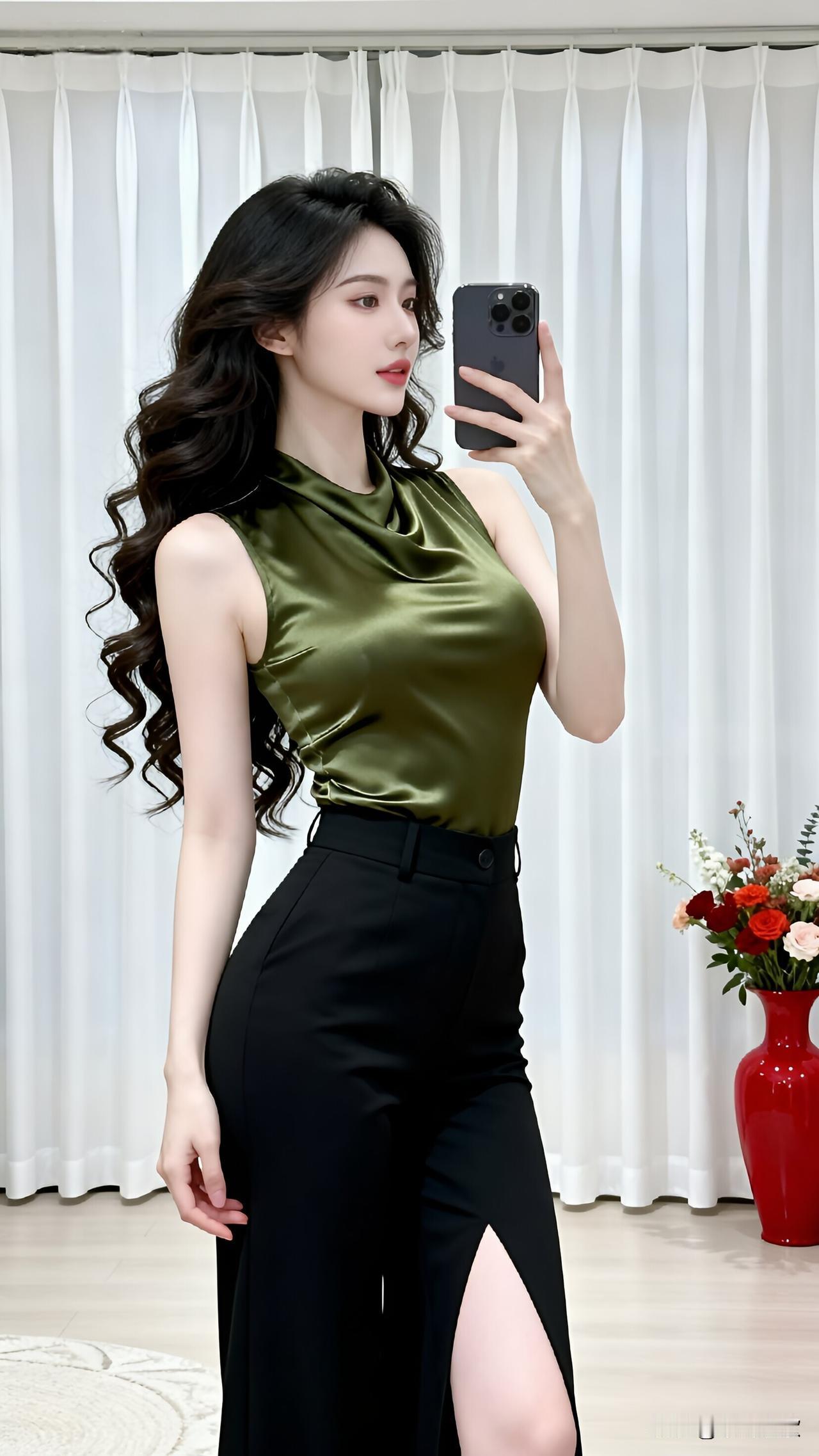 终于烫了心心念念的大波浪。 站在镜子前自拍的时候,突然有点不认识自己。这个穿墨绿缎面上衣、开衩黑裙的人,是我吗? 上周刚结束一段三年的感情,剪了头发,换了风格。朋友说我在"报复性变美",其实只是想找回自己。 原来改变外形,真的可以改变心情。 今晚有约,不重要是谁。重要的是,我又开始期待出门了。 你认为最有气质的美女是谁? 有气质的穿搭是怎么样的 分享一张最近随手拍的照片