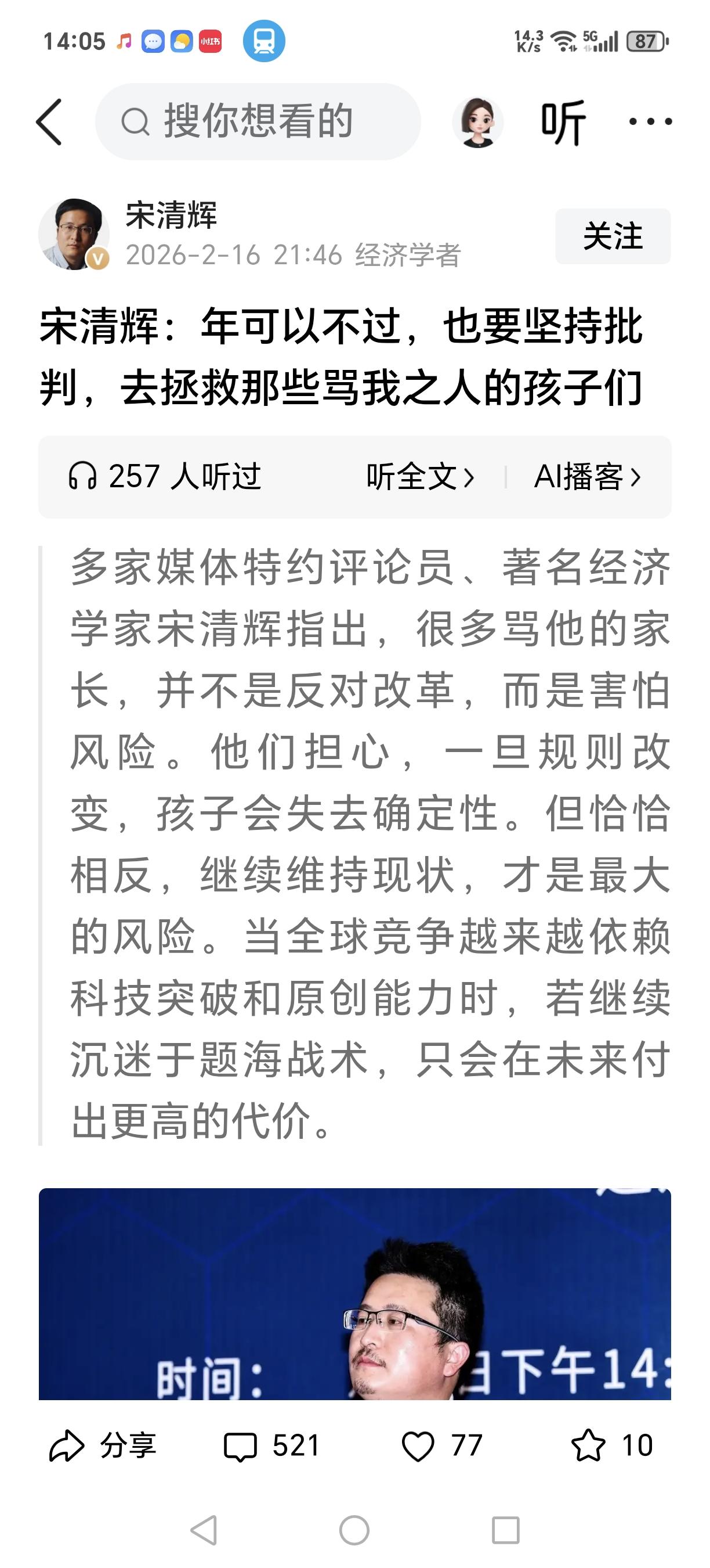 经济学家宋清辉称:“年可以不过,也要批判应试教育”!宋专家这是钻了牛角尖。高考制度是当下最为公平的教育机制,能让每一个贫困家庭的孩子有书可读、有学可上,只要达到分数线就能上大学。 如今社会不断发展,分数并非唯一的出路,我们也该从自身找找问题。不能因为个别孩子出现状况,就全盘否定我们的教育机制。就目前的教育制度而言,对千千万万的老百姓来说,读书是实现阶级跨越的最佳途径。你家孩子不行,宋清辉的孩子不行,并非是教育制度的问题,或许与你们自身的教育方式和付出有关。 当然,我们的教育或多或少存在一些问题。它受到资本操控,受当下价值观的影响,学校、家长和学生都陷入内卷,学校逐渐功利化,教师也渐渐偏离育人的初衷。 这与教育制度无关,我们需要纠正的是道德风尚,重塑价值体系来改善当下教育现状!